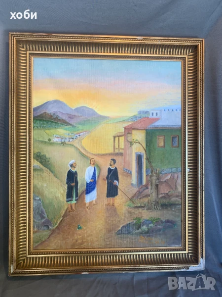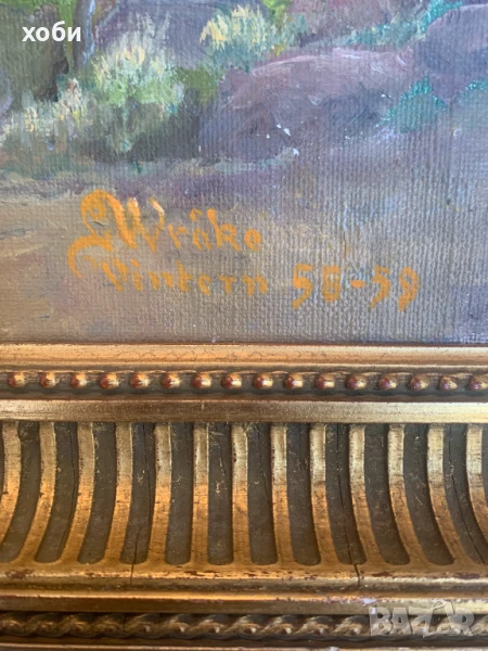 стара картина масло на платно с рамка подписана и датирана размери 55см на 65см с рамката