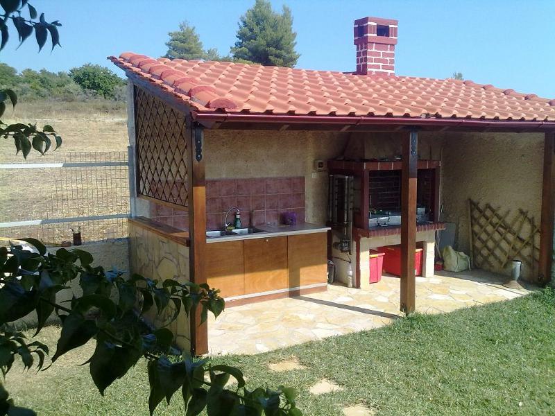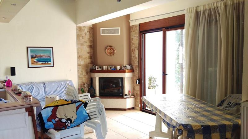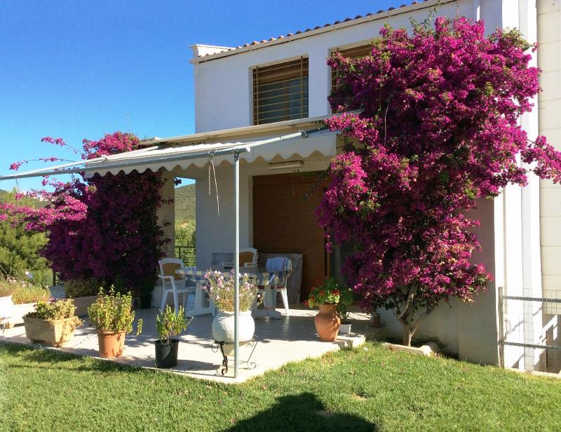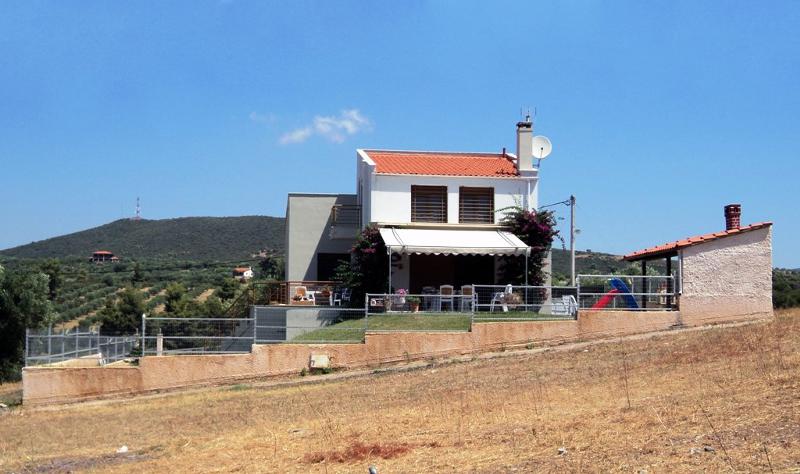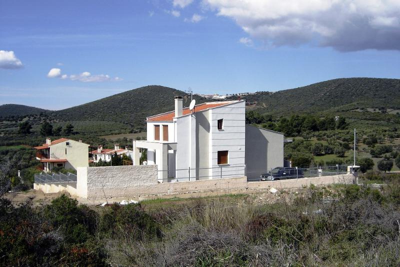 Къщата се намира в хълмиста местност с гледка към морето, на около 1 км от морето.