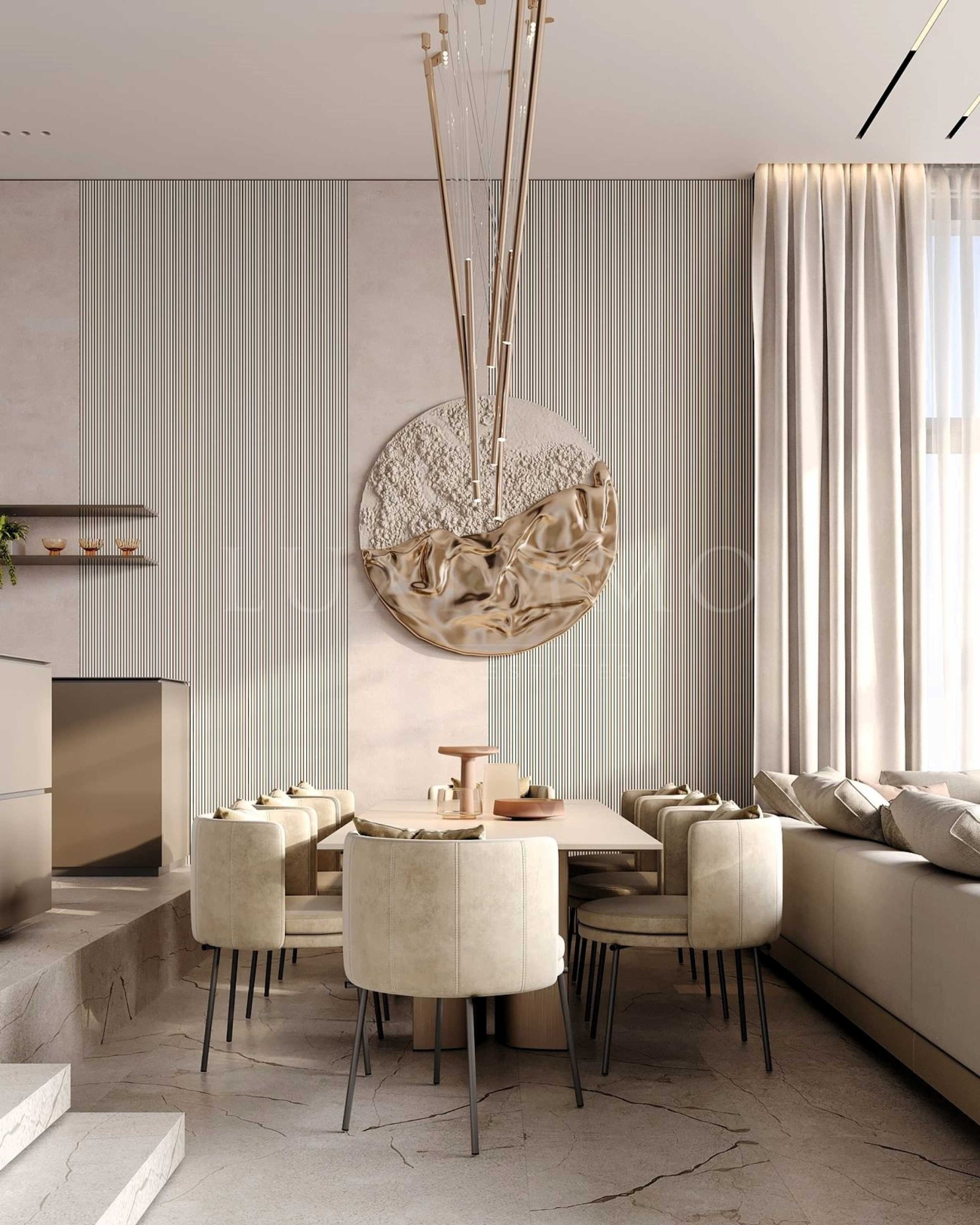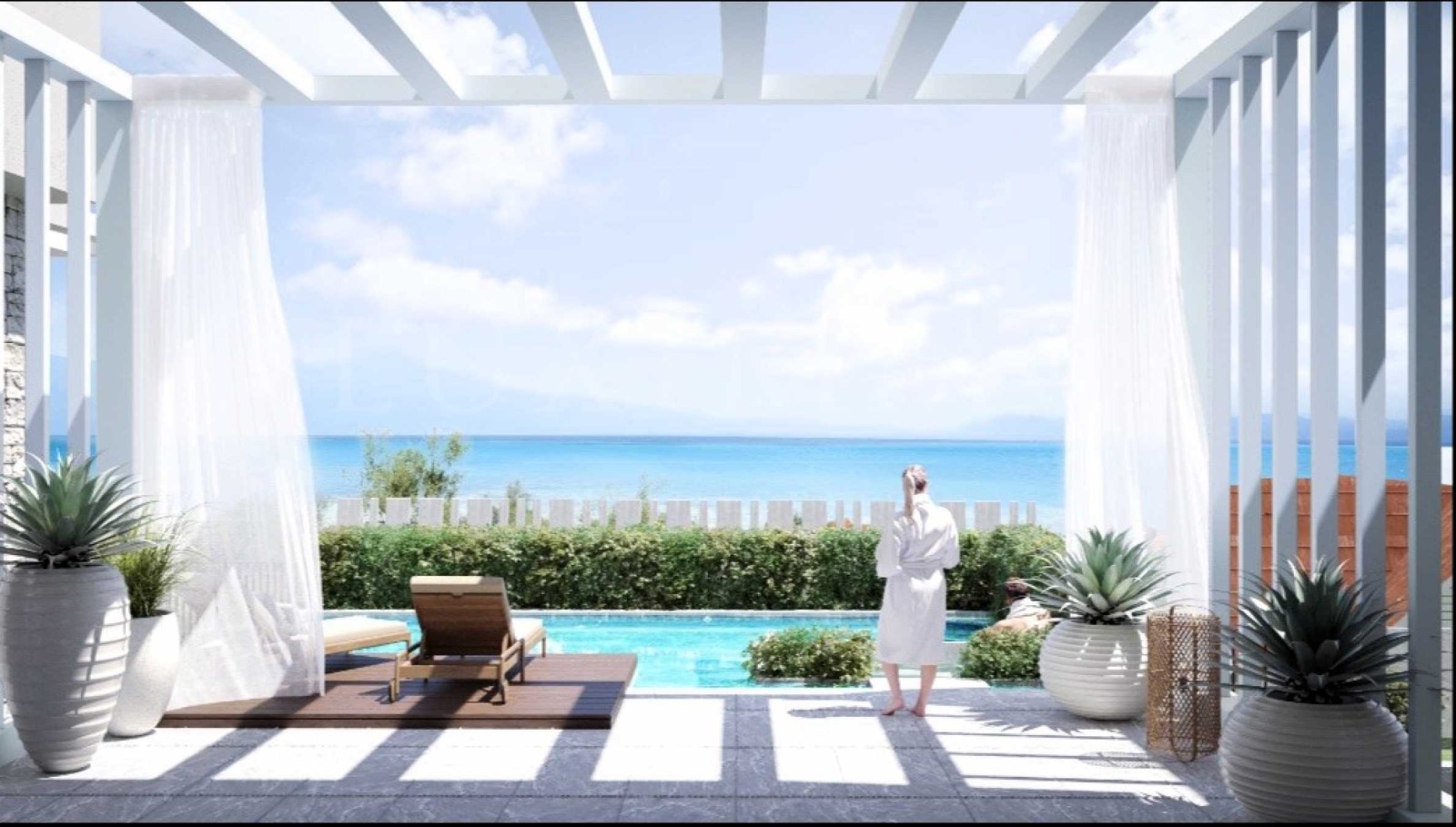 Вилата е със съвременна минималистична естетика комбинирана с нюанси средиземноморски стил. Къщата е проектирана като хармонично жилищно пространство подходящо не само за лятото, но и за всеки друг сезон от годината. Има компактни размери, но в същото време и максимално полезни, и удобни пространства за настаняване. За изграждането и са предвидени висококачествени съвременни материали от най-висок клас, също и модерни мебели, и ел. уреди.
