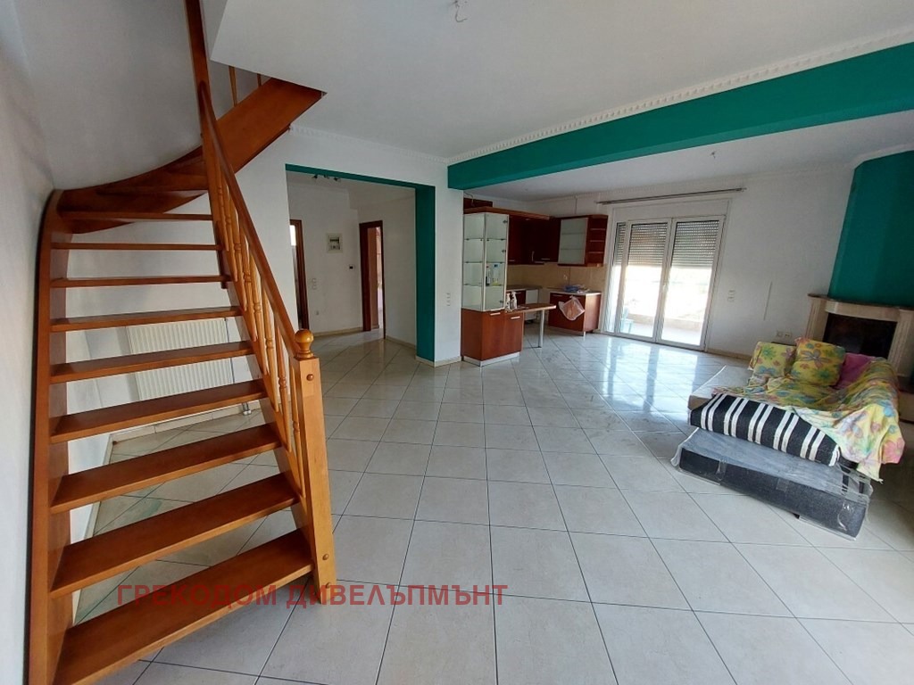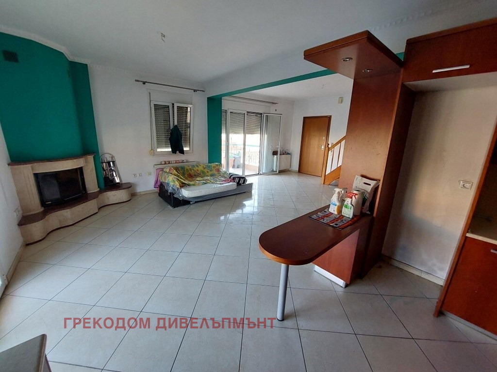 Продава се апартамент на две нива с площ 180 кв.м. в Ефкарпия, Солун. Мезонетът се намира на 1 етаж и таванско помещение на 2 етаж. 1-ви етаж се състои от 2 спални, хол с кухня, една тоалетна, една хидромасажна вана и голяма тераса. Лофтът се състои от една спалня, хол, една WC, една хидромасажна вана и голяма панорамна тераса. От прозорците се открива прекрасна гледка към града, планината. Има: камина, отопление, кът за барбекю. Екстри, включени в имота: паркомясто.