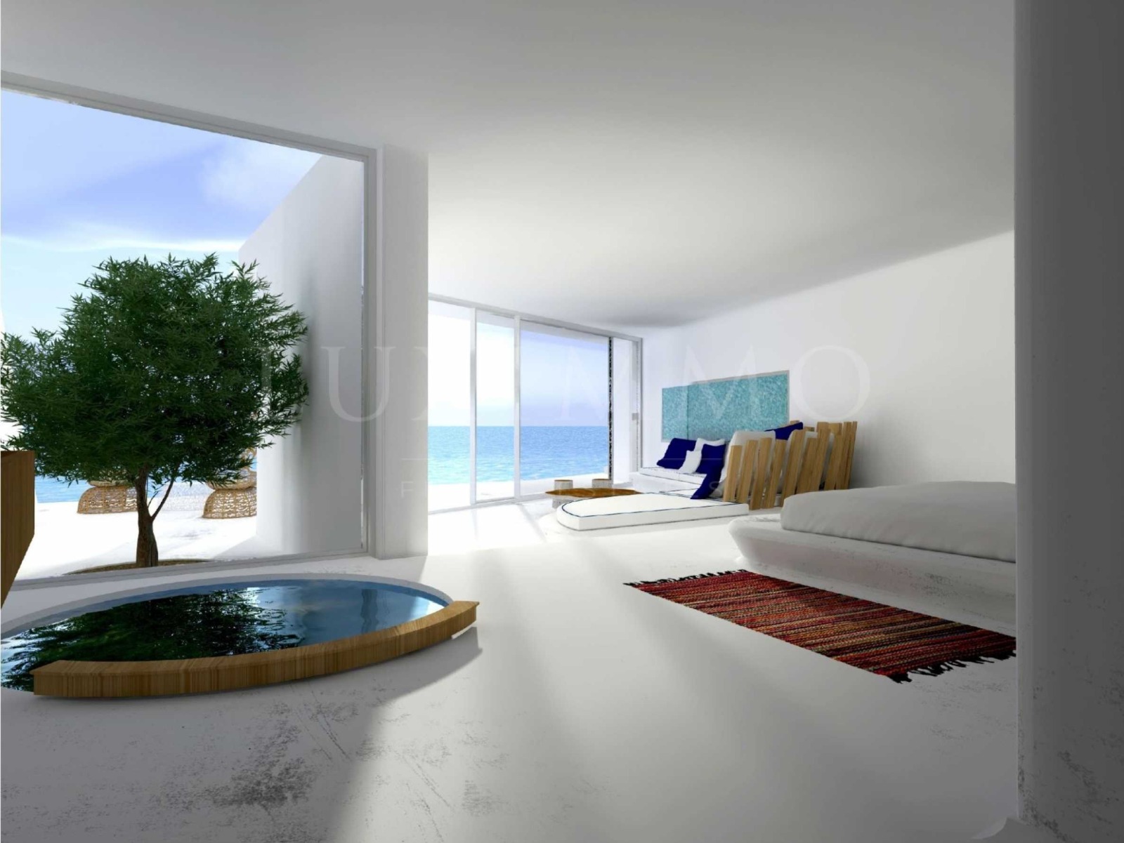Красива луксозна екологична резиденция с уникален архитектурен стил, Уникална самостоятелна къща с басейн, на първа линия до морето, на забележително място в Неа Пропонтида, в сърцето на Халкидики. Имотът е разположен на площ от 671.29 кв.м. , с изключителна морска панорама, на 3.7 .км от центъра на селото Състои се от 3 нива с общо 463 кв.м. жилищна площ. Имотът включва 5 спални, склад и 5 бани. Възможност за преустройство на помещенията.