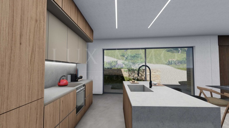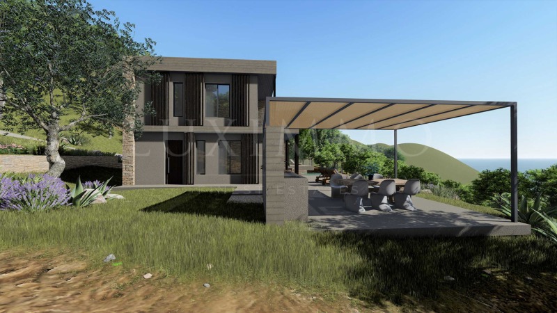 Вилата е проектирана и построена според възможно най-високите стандарти. Изчистените линии и комфортът са в основата на нейния дизайн. Използваните строителни материали са от най-високо клас. Според нашата визия архитектурата на къщата е вдъхновена от местния стил, използвайте доколкото е възможно местни материали предимно камък, дърво и пясък. Ние уважаваме природата и желанието ни е да съжителстваме в хармония с нея. Част от функционалните решения разчитат на възобновяеми източници слънчеви панели, резервоари за дъждовна вода и термопомпи. Ние се грижим за това, което е съществувало стотици години преди нас и затова в някои случаи преместваме и пресаждаме стари маслинови дървета, когато е възможно и необходимо.