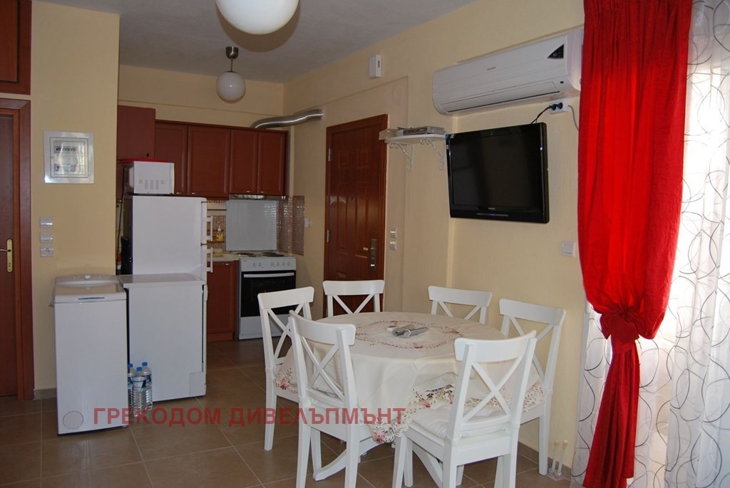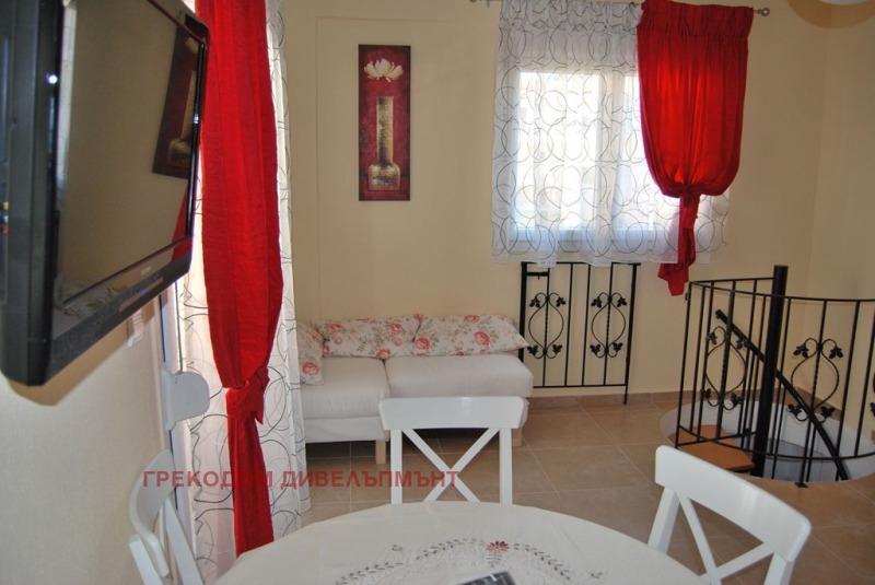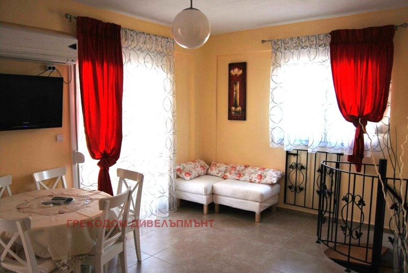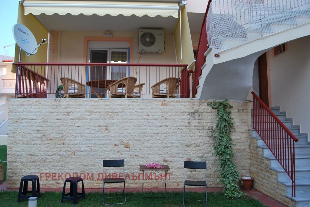 Предлагаме за продажба апартамент на две нива тип мезонет в Скала Фурка, Касандра (Халкидики). Мезонетът заема сутерена и на първия жилищен етаж на сградата. Сутерен се състои от студио - хол с кухня и баня с тоалетна. Първи етаж се състои от 2 спални , хол с кухня, баня с тоалетна и тераса.