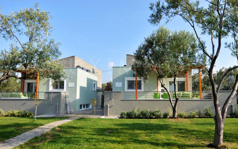 Къща с басейн в затворен комплекс от 3 къщи и достъп до плажа в курортното крайбрежно селище Принос на о. Тасос.
