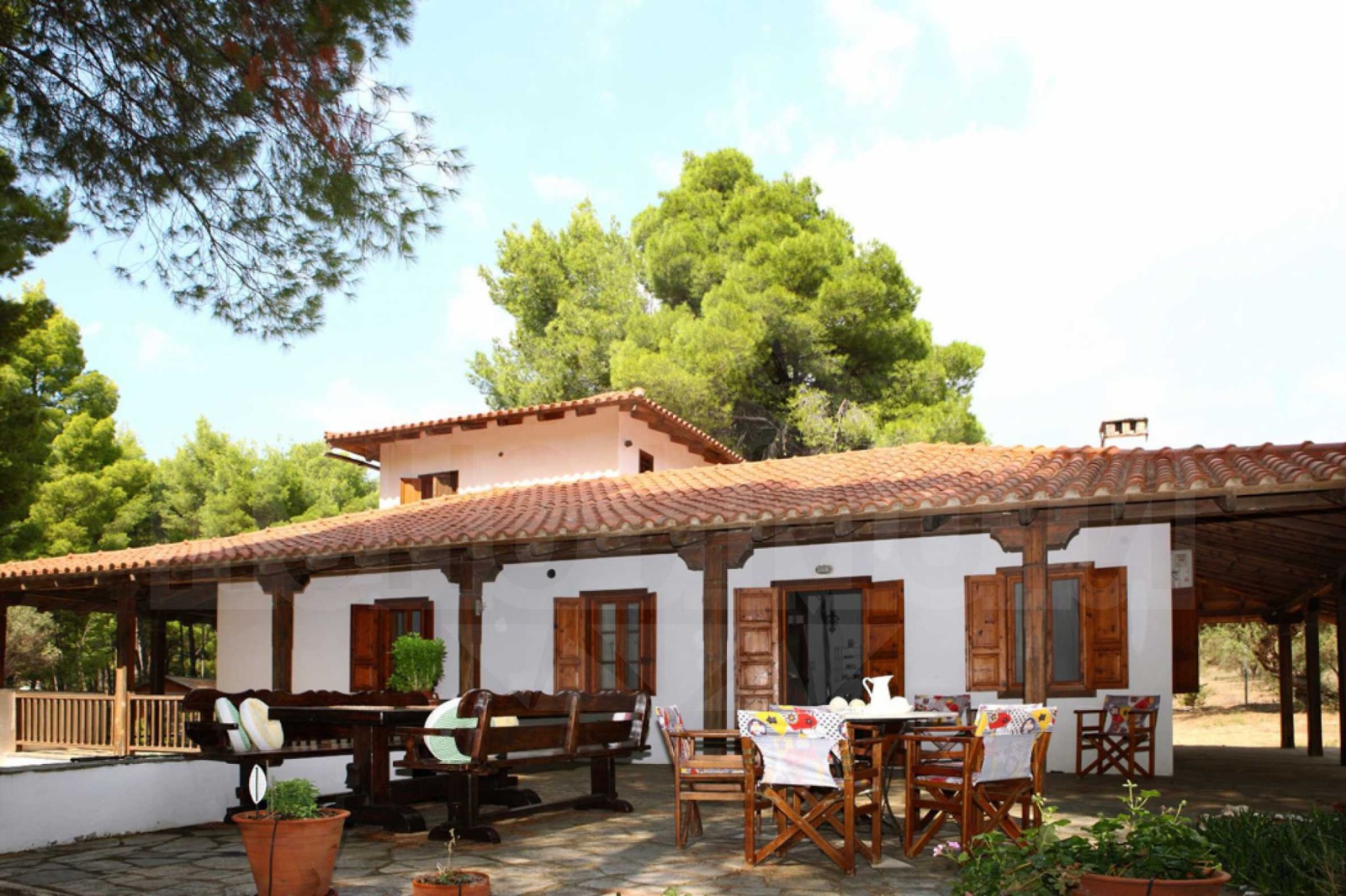Голяма и просторна вилa разположена във ваканционно селище Метаморфоси на ръкава Ситония, част от полуостров Халкидики. Вилата е построена през 1978 година и се простира върху площ от 255 кв.м. Къщата е изградена на три нива, като предлага пет спални и три бани. На първо ниво има две спални и баня. На второ ниво има кухня и голям хол, две спални и баня, а на трето ниво има още една спалня и една баня. Къщата е напълно обзаведена и оборудвана с всичко нужно.