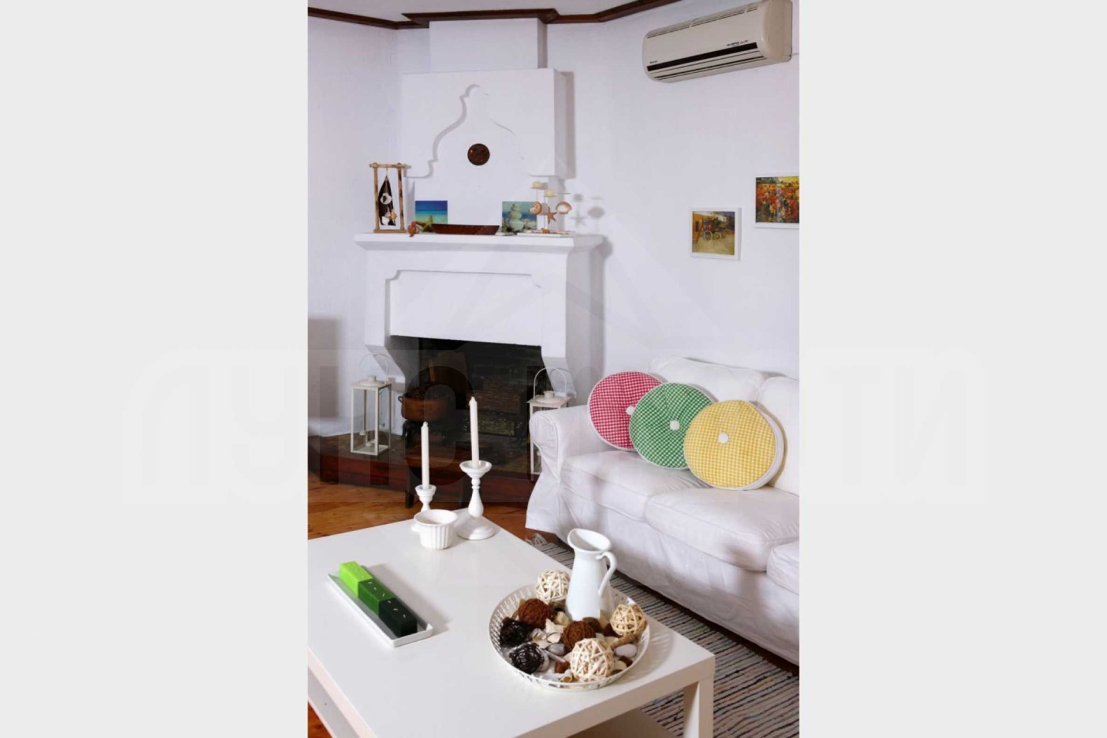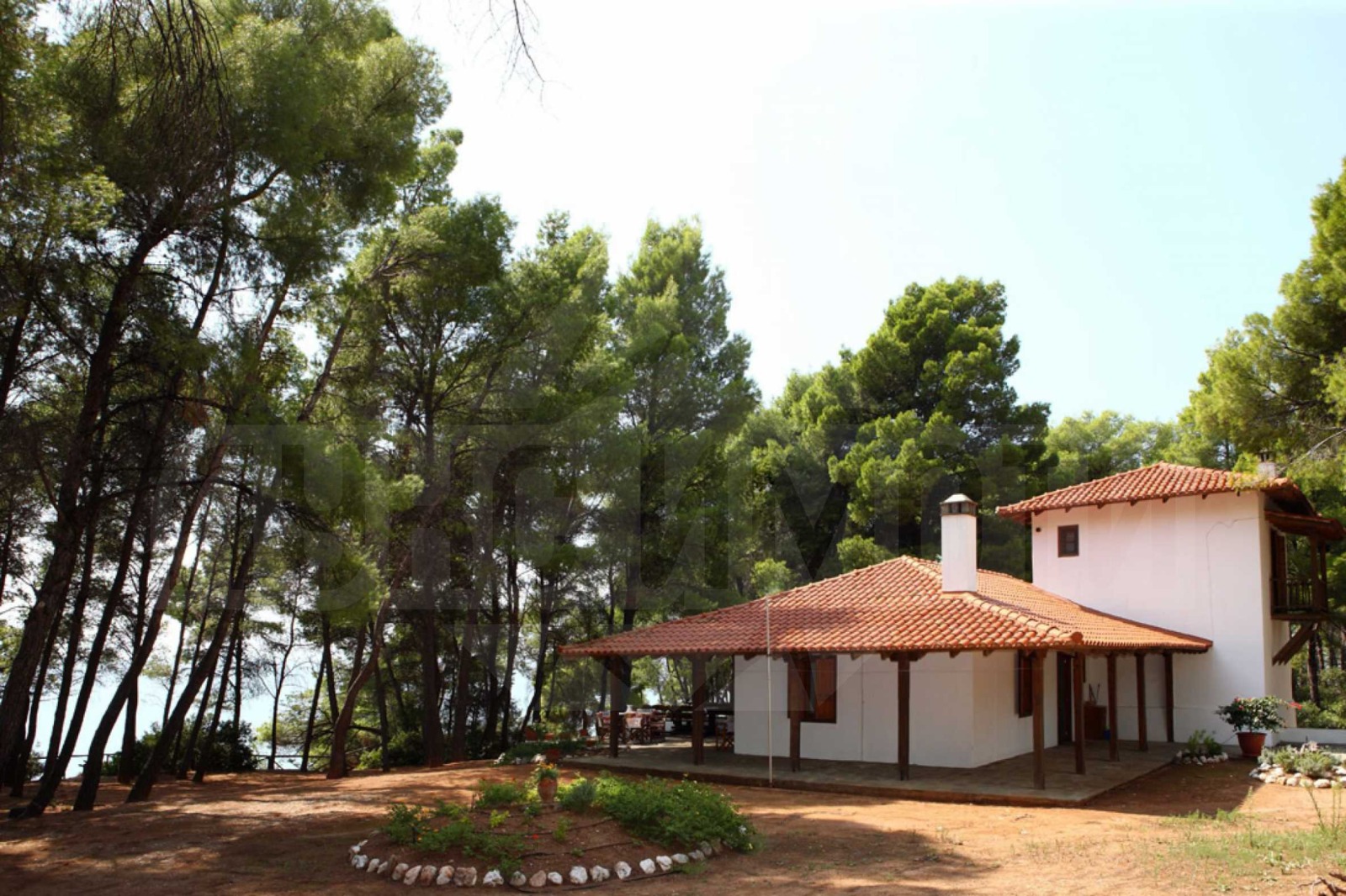 Отоплението се осъществява посредством камина и климатизация. Имотът се предлага с дървена дограма и подове с дюшеме. Имотът разполага с килер, мазе и паркинг. От имота се разкрива гледка към морето, като плажът е в непосредствена близост. Около къщата има голям парцел от 5200 кв.м с много дървета и зеленина.