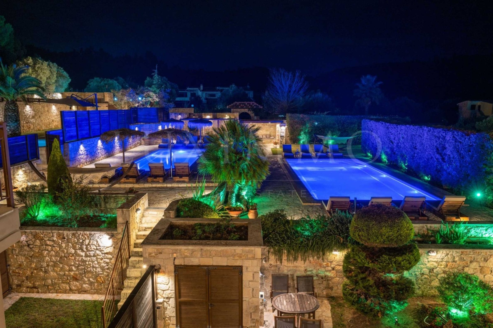 Продава се комплекс от 5 самостоятелни вили на брега на морето. Всяка вила разполага със собствен открит частен плувен басейн, върху обща площ от 6.600 кв.м.. 5-те вили имат общо 14 спални, 9 бани, 1 тоалетна и няколко складови помещения. Страхотна гледка към морето има от почти навсякъде в комплекса. Интериорът е решен с висококачествени материали и мебели по поръчка. Монтирани са климатици, електроуреди, отопление и всичко необходимо за една къща. Този специфичен проект е идеален за инвестиция, тъй като вече има собствена клиентела и е готов за работа веднага!
