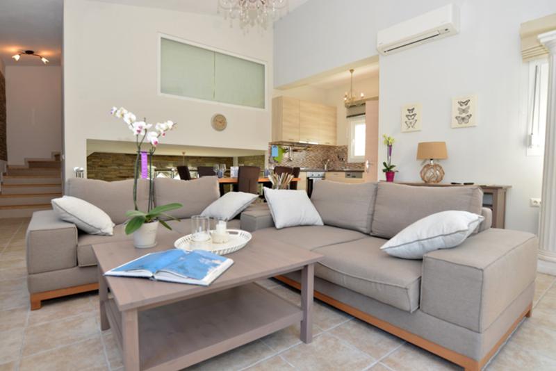 Grekodom предлага за продажба 3-етажна вила (150 кв.м.) на Тасос, Гърция. Полусутеренът се състои от 2 спални, една баня, една съблекалня и една сауна. Партерът се състои от, хол с кухня, една тоалетна. Първият етаж се състои от баня с тоалетна. Вилата е на втора линия с частична гледка към морето. Дворът е с площ 1000 кв.м. Със собствен басейн.