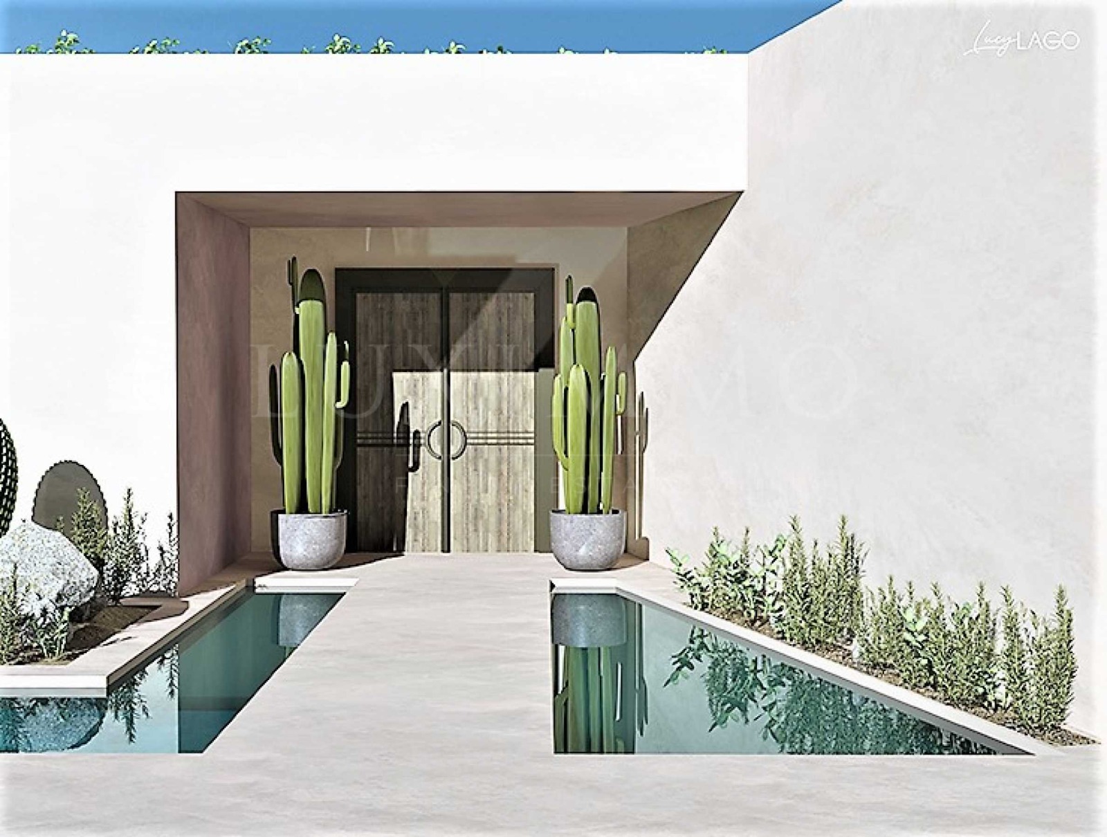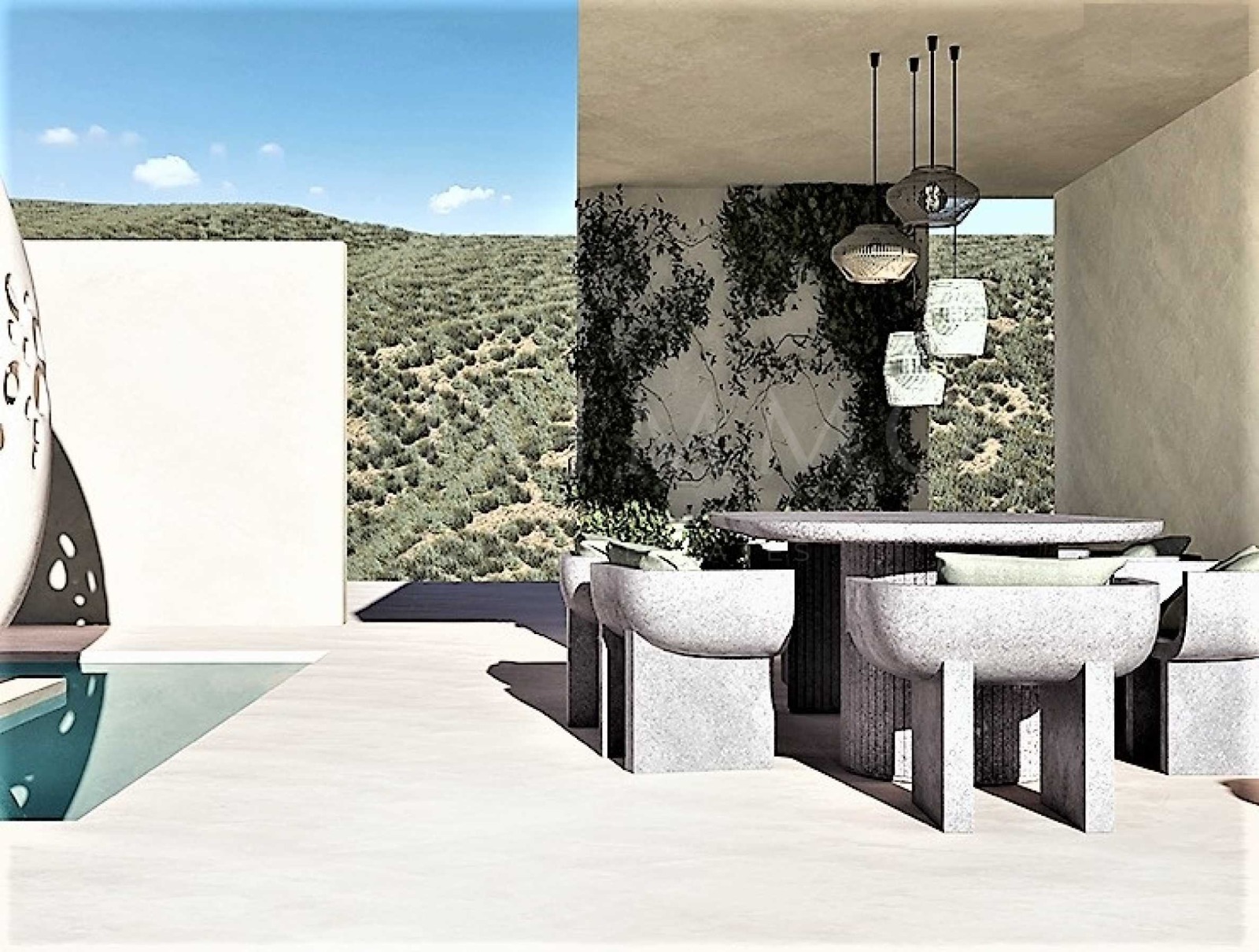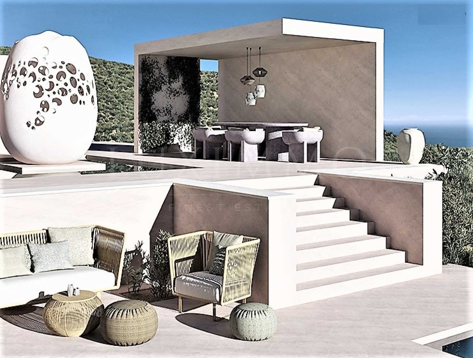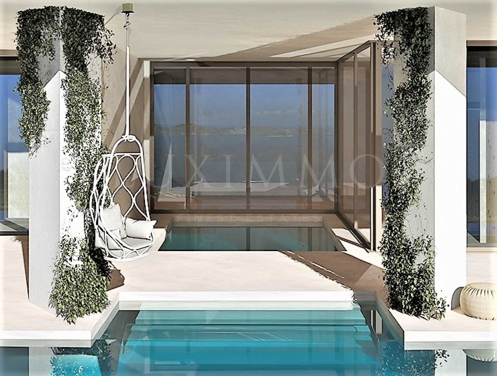 Вила Gaia е проектирана, като са взети предвид климатът, траекторията на слънцето и преобладаващата посока на вятъра и е комбинирана с красотата на пейзажа. Архитектът се е фокусирал изцяло върху човешкия мащаб, от дизайна на ландшафта до артикулацията на сградата, от просторността на интериора до най-малкия детайл на материалите. Infinity басейна е 18 м. на 5 м. и дълбочина 1,60 м., като към него има шезлонги. Това е идеалното място да седнете и да се насладите на гледка към морето, градината или планината с коктейлна напитка в ръка. Млечно розови цветове, пясъчни нюанси и текстури, също и маслиновата палитра преобладава в мебели и в цялостния интериор. Скулптурата EGG е доминанта на композицията. Вилата се състои от поредица от кътове, място за сядане в спокойното утро гледащо изгрева, място за събиране с цялото семейство за обяд в прохладата на сянката и вятъра, място за съзерцание под снянката на стогодишно маслиново дърво, място за пиене на чаша вино ...