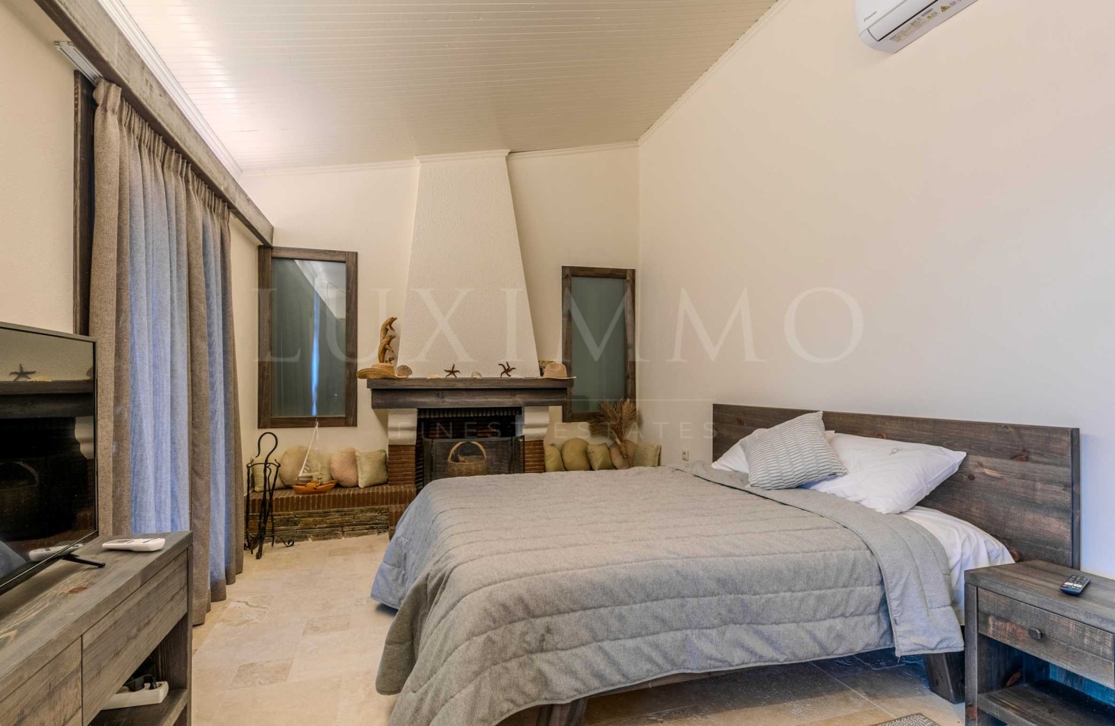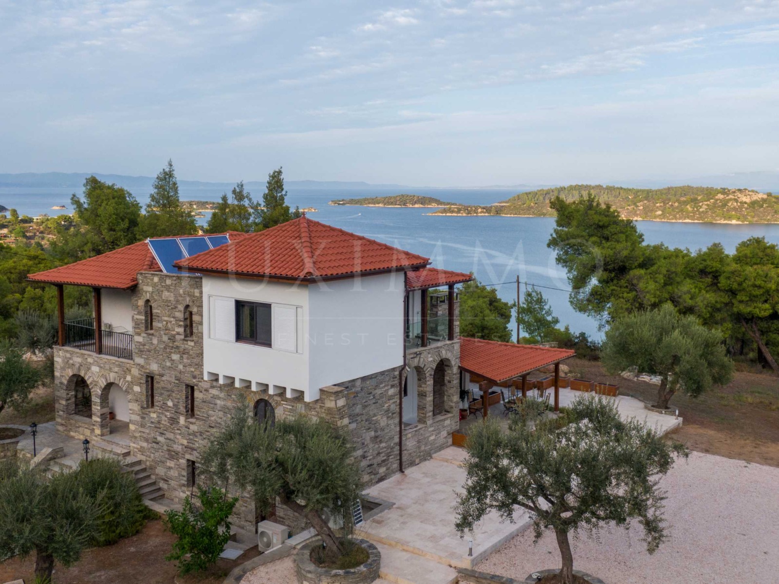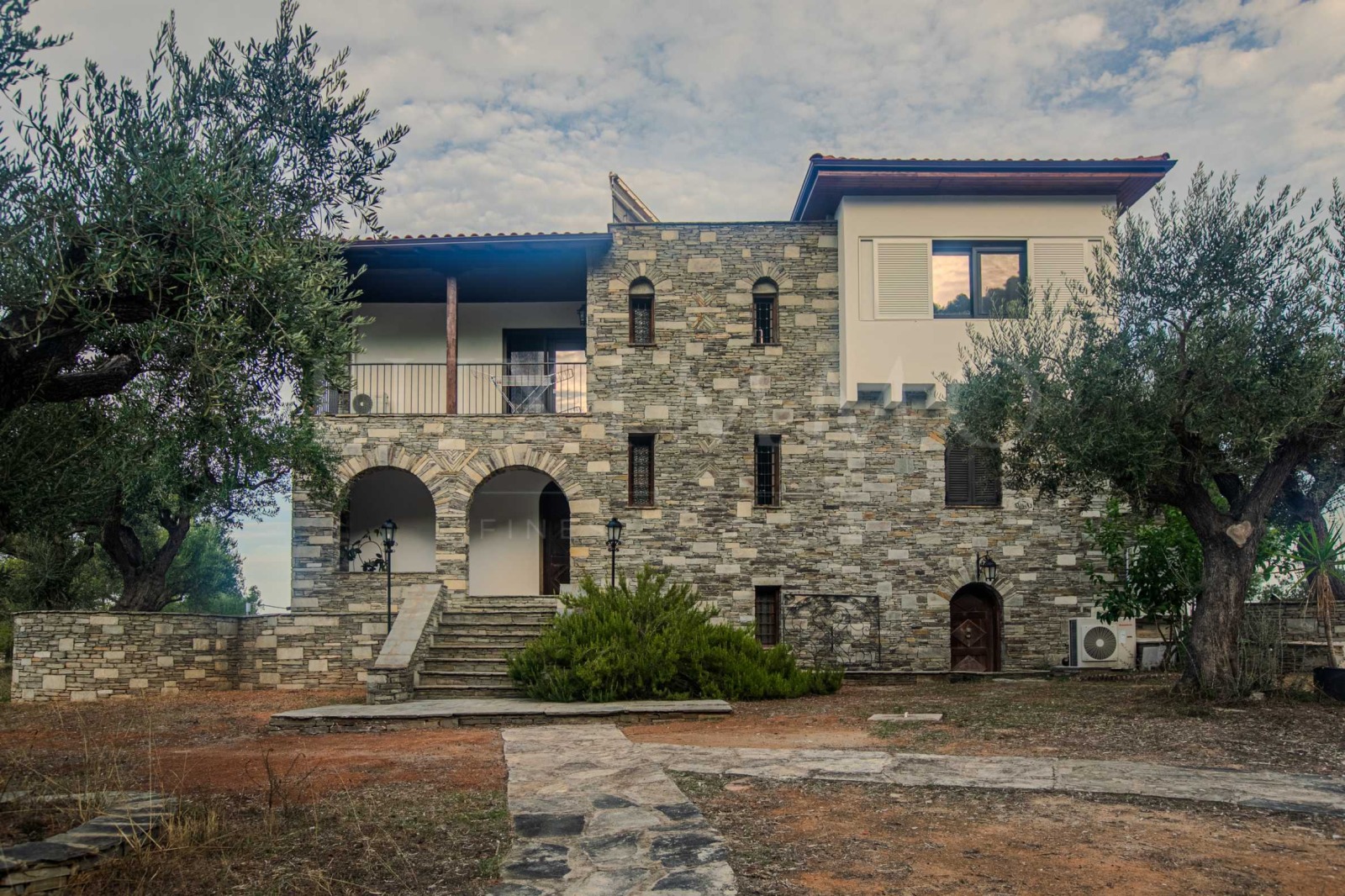 Величествената, изцяло реновирана вила се извисява над кристалночистите води на Егейско море и предлага зашеметяващи изгледи, и пейзажи простиращи се над о-в Диапорос до свещената планина на Атон/Света Гора.