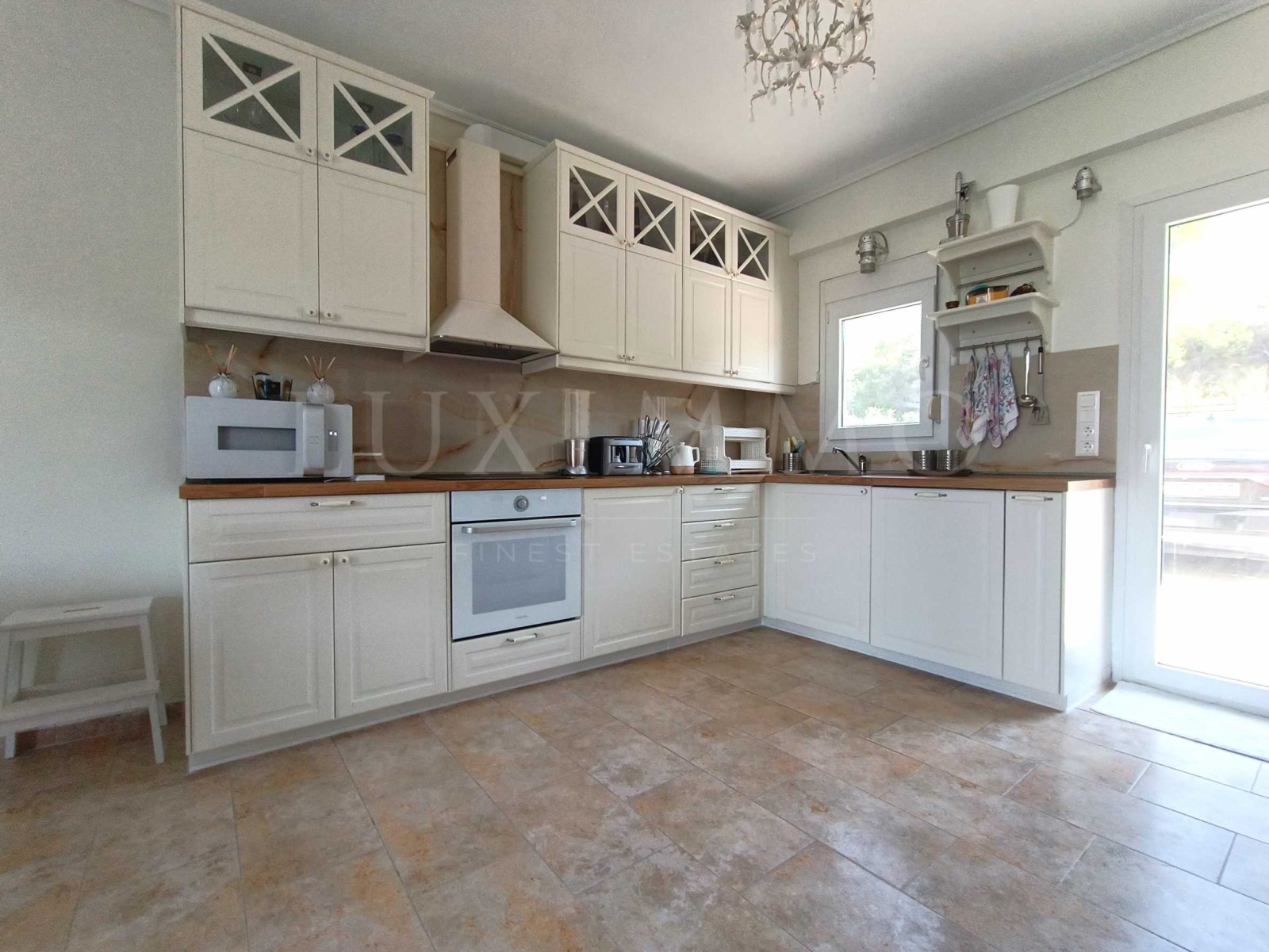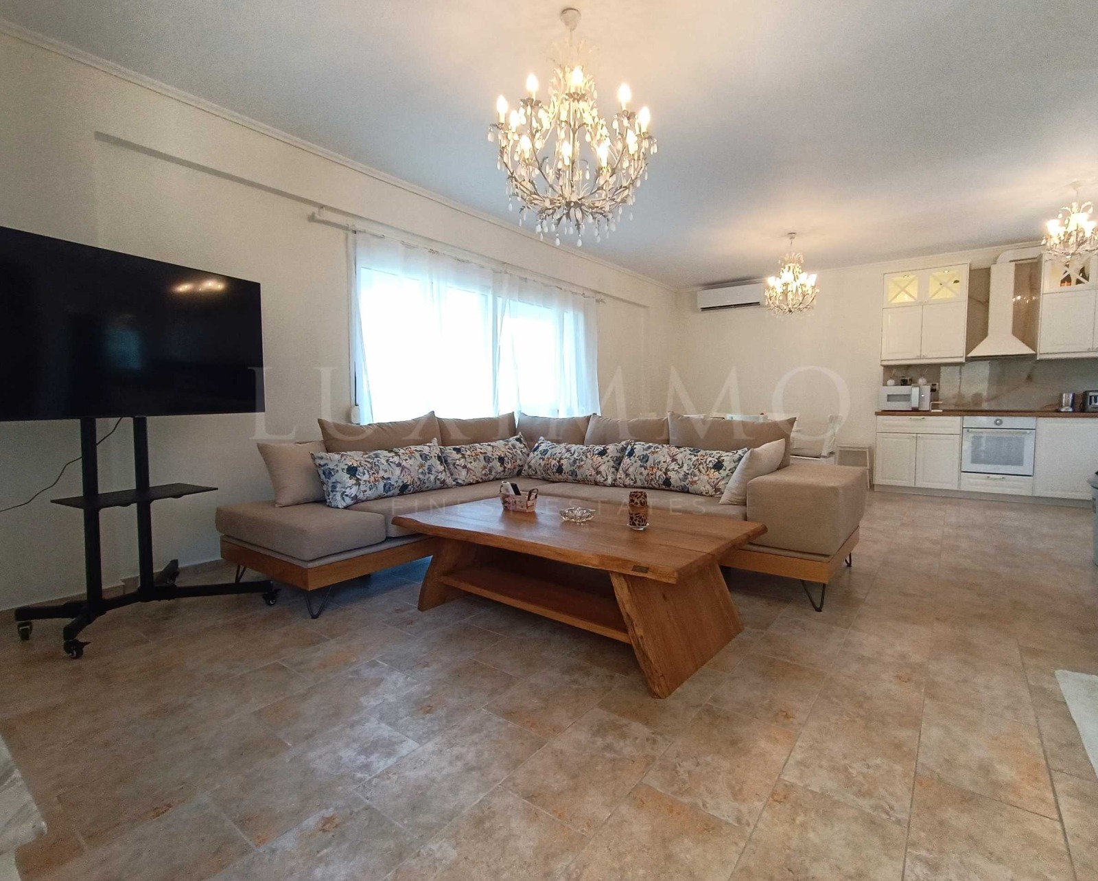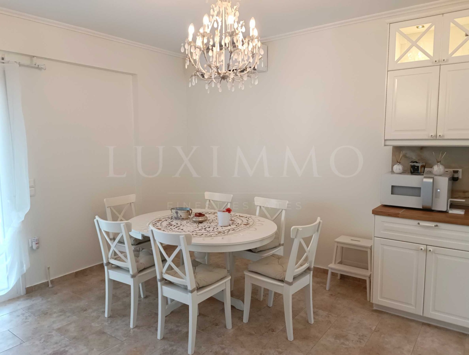 Имотът е част от затворен комплекс и се отличава с високо качество на строителство, изключително подържани общи части, обзавеждане със стил и финес и най-вече с безпирния и зашеметяващ изглед към кристално чистите, тюркоазените води на Егейско море.