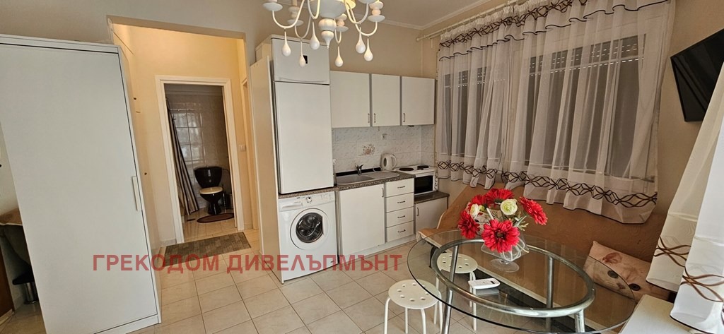 Апартаментът има изложение с изглед към вътрешен двор. С гледка към морето . Имотът разполага със следните екстри: мебели, климатик.