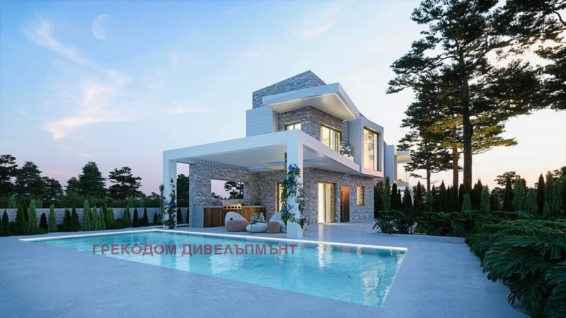 Предлагаме за продажба 3-етажна вила ново строителство в Ханиоти, Касандра (Халкидики) - на 100 м от плажа.