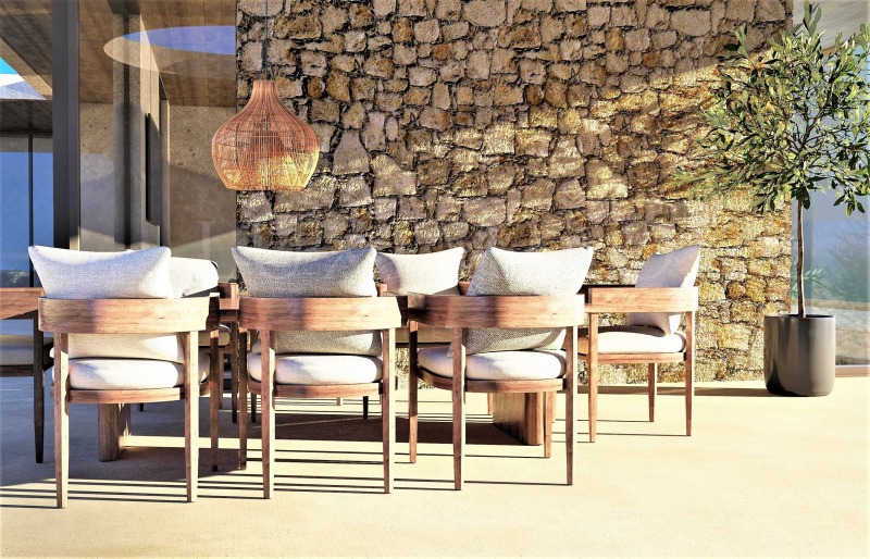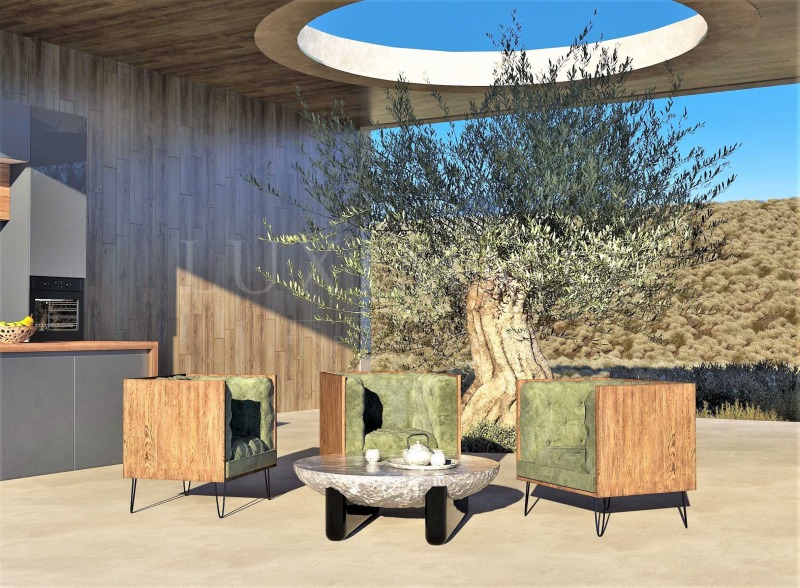 маслиново дърво, което се вписва в архитектурното пространство на вилата и я допълва перфектно. Всяко място има своята специална атмосфера на топлина и сладост.