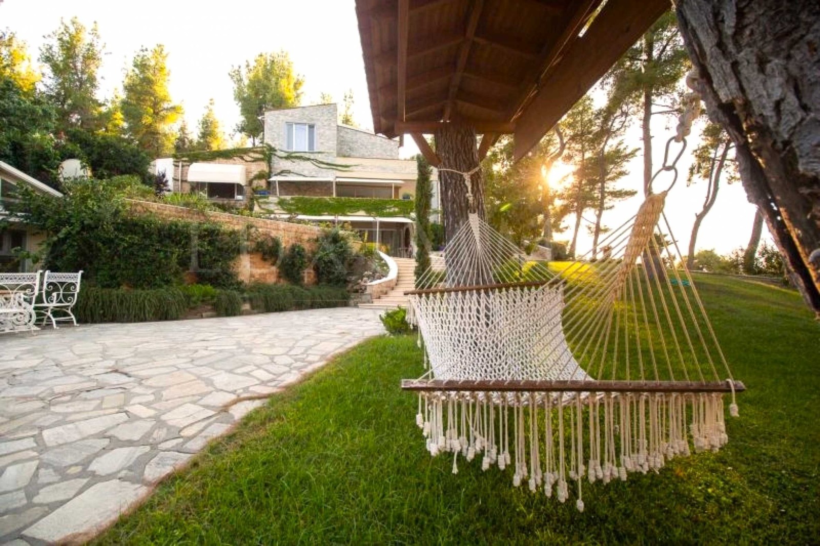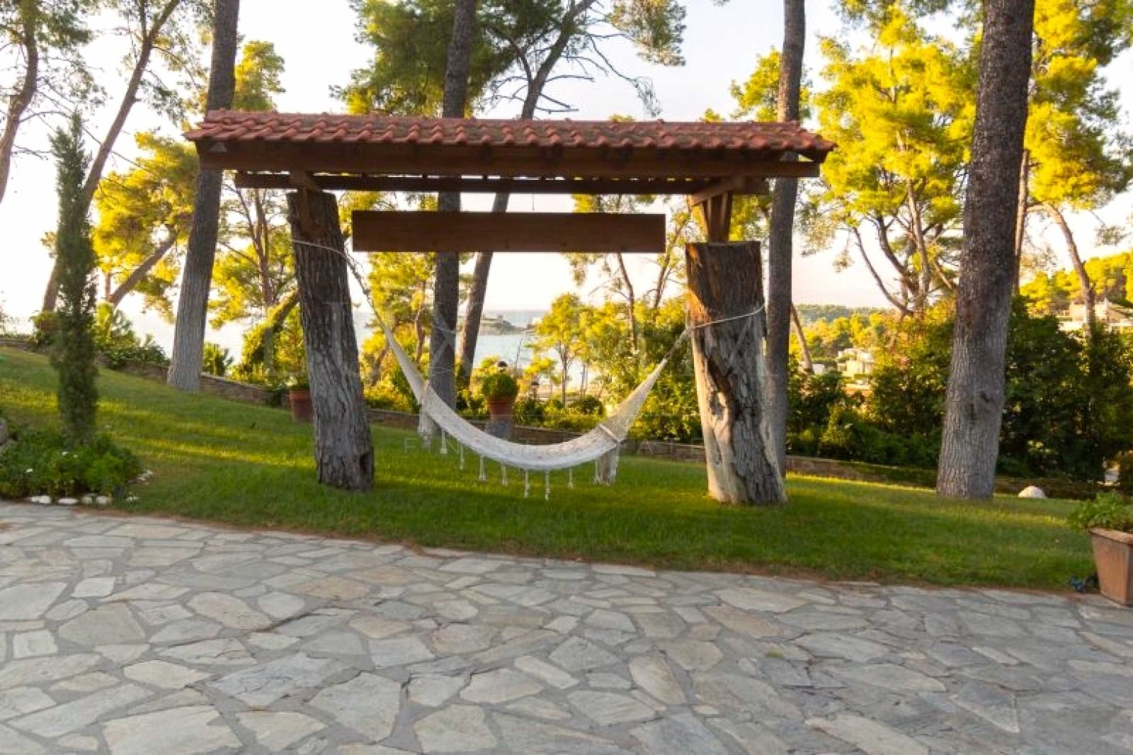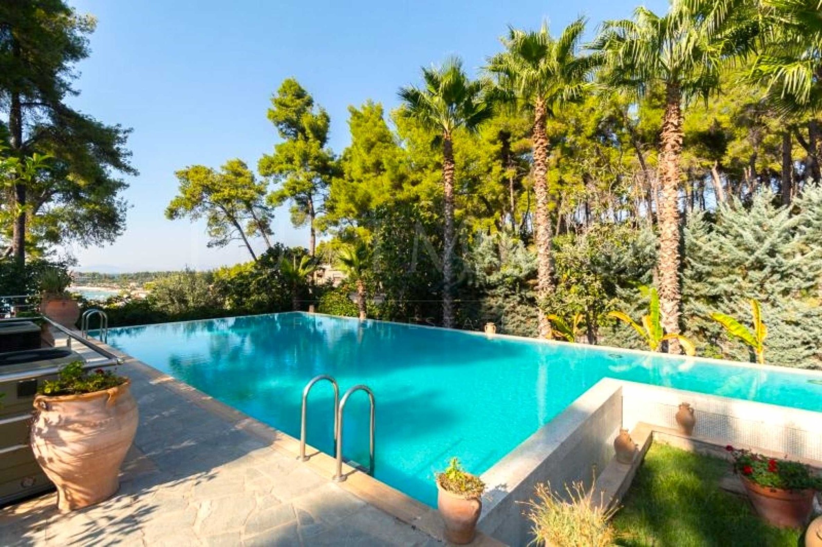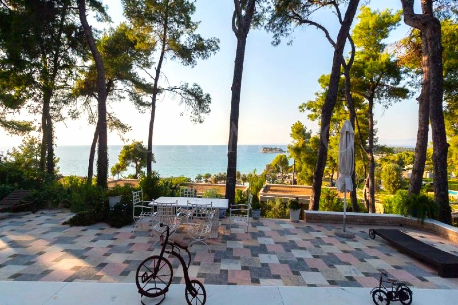 гора-парк. Резиденцията е на около 200 метра от плажовете на 'Sani Resort' и всичките удобства на комплекса, както се ползва и от доста привилегии, предлагани от 'Sani Resort'.