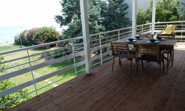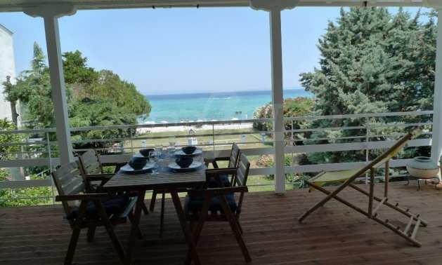 Уникална самостоятелна къща пред морето, на забележително място в Касандра, в сърцето на Халкидики. Имотът се намира на площ от 2557,19 кв.м. , с изключителна морска панорама, на 500 м от центъра на селото Състои се от 2 нива с обща площ 150 кв.м. на жилищна площ. Имотът включва 4 спални(и), склад и 2 бани(и)
