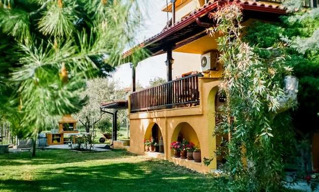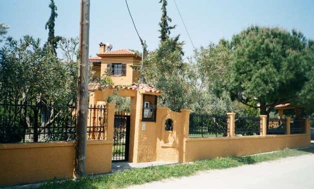 Уникална самостоятелна къща на пешеходно разстояние от морето, на забележително място в Ситония, в малкия рай на Халкидики. Имотът е разположен на площ от 780 кв.м. на 900 .м от центъра на селото Състои се от 3 нива с общо 161 кв.м. жилищна площ. Имотът включва 4 спални, склад и 3 бани