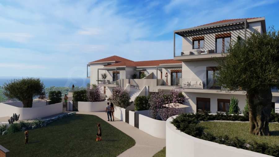 Комплексът е завършен през 2012 г. и разполага с 12 ваканционни имота в три основни сгради с обща разгърната застроена площ от 1270 кв.м. Парцелът, на който е построен комплексът, е с площ от около 7000 кв.м и е в най-високата точка на гр. Никити, откъдето се открива спираща дъха гледка към Егейско море. В комплeкса са предвидени кътове за отдих с беседки и барбекю, както и възможност за малък личен басейн или джакузи към всеки от имотите.
