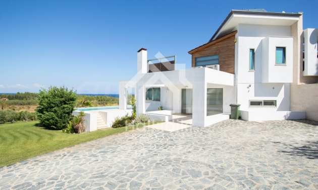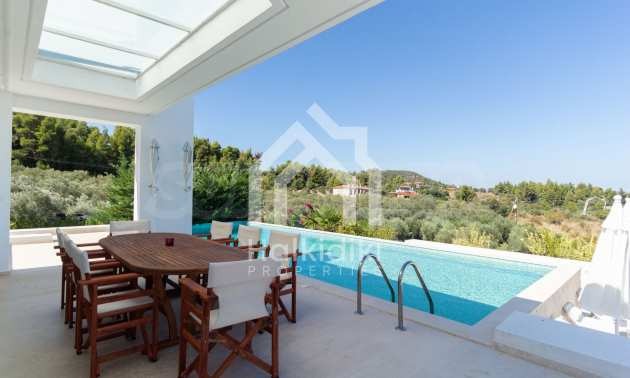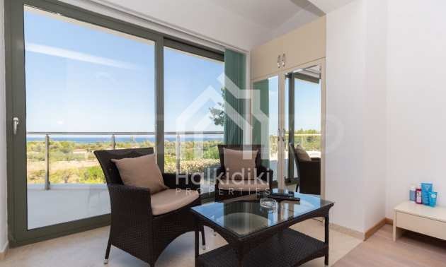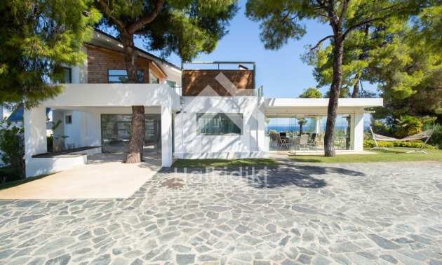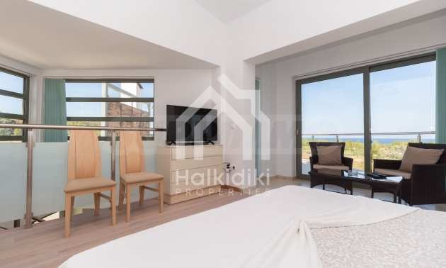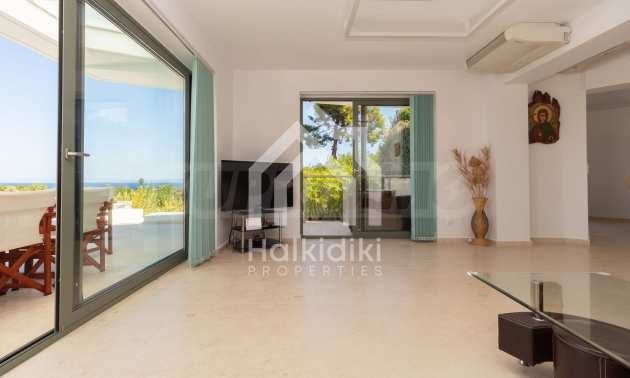 Луксозна резиденция. Красива самостоятелна къща с луксозен басейн, на забележително място в Касандра, в малкия рай на Халкидики. Имотът е разположен на площ от 2000 кв.м. , с изключителна морска панорама, Състои се от 3 нива с общо 330 кв.м. жилищна площ. Имотът включва 5 спални, 1 WC. , склад и 4 бани