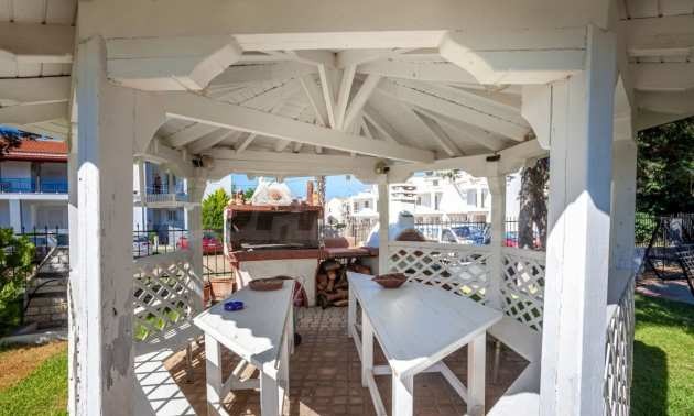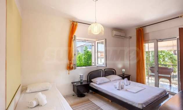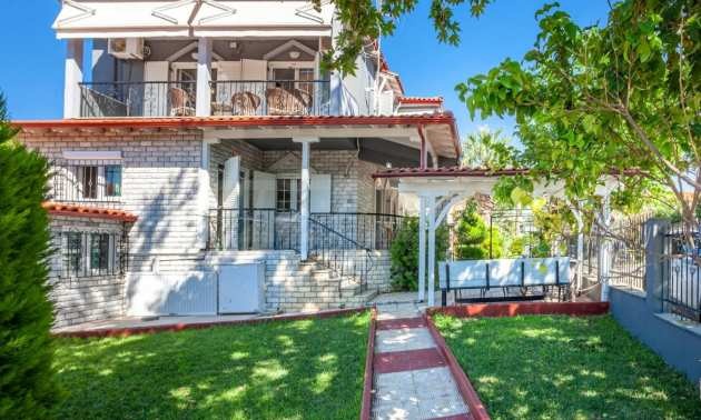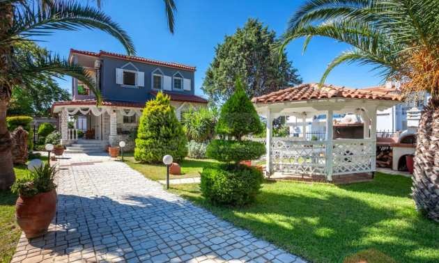 Уникална самостоятелна къща на пешеходно разстояние от морето, на забележително място в Ситония, в сърцето на Халкидики. Имотът е разположен на площ от 750 кв.м. на 700 .м от центъра на селото Състои се от 2 нива с общо 150 кв.м. жилищна площ. Имотът включва 5 спални, 1 WC. , склад и 1 бани