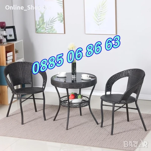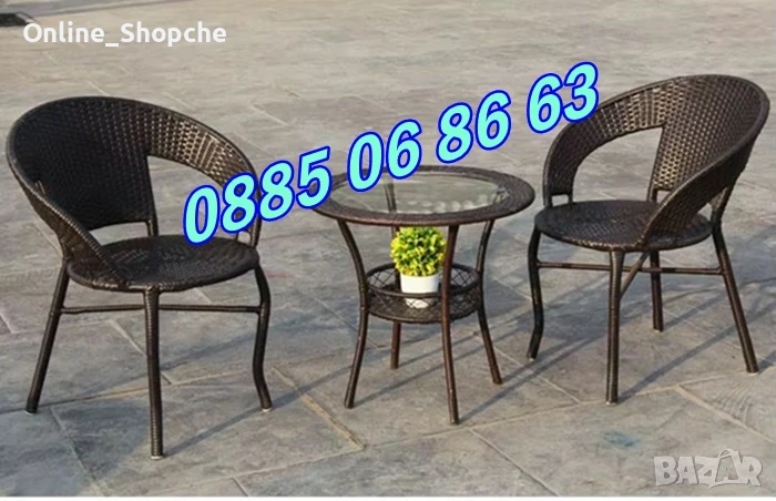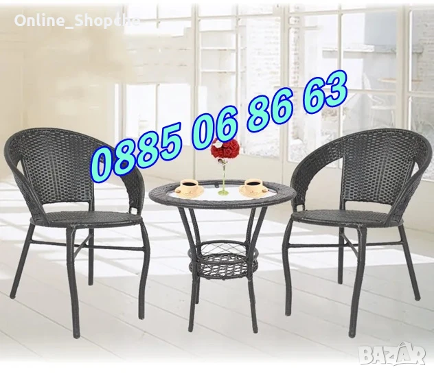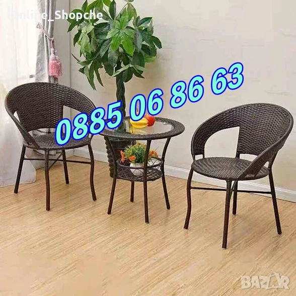 Градински ратанов комплект маса с два стола