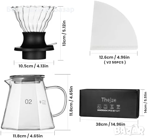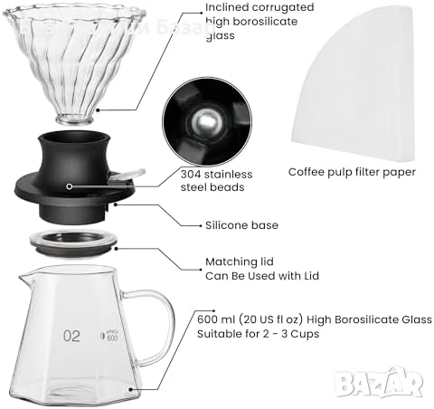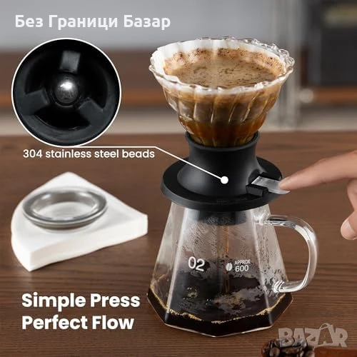 Нов Имърсионен дрипър за кафе + стъклена кана 600мл + филтри 50 броя