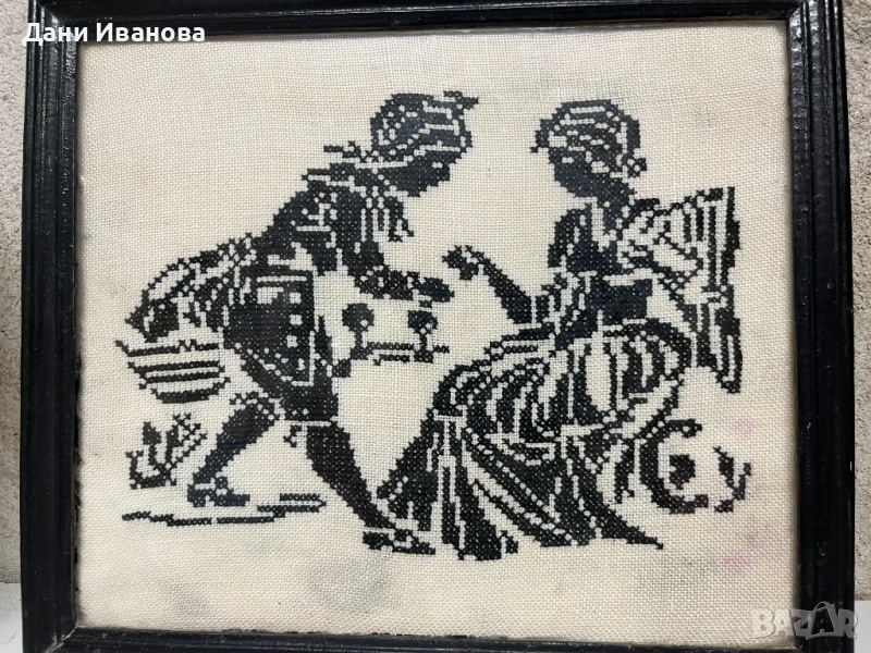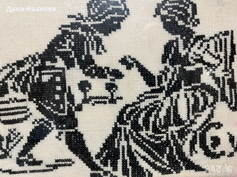 Силуетен, силно контрастен дизайн, изработен с кръстовиден бод.
