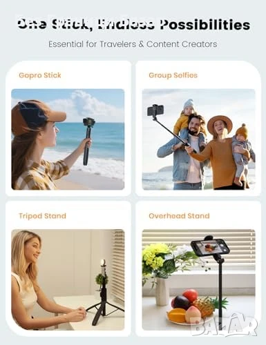 Нов Телефонен Статив с Осветление и Дистанционно – 180° Завъртане Селфи стик