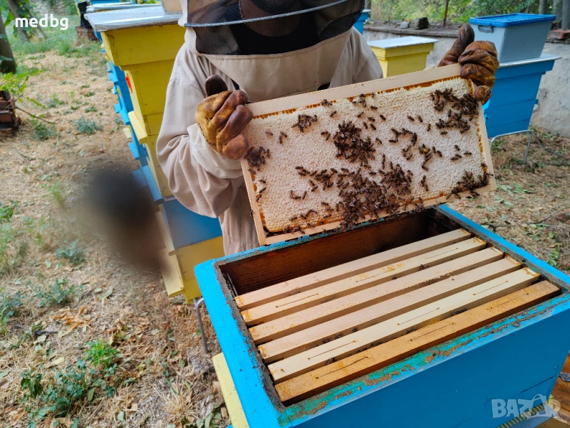 В пчелната восъчна пита се съдържа най-чистият и полезен, натурален пчелен мед, който е не центрофугиран, нефилтриран и не докосван от човешка ръка. Пчелна рамка с мед, директно от кошера. Рамките са на 100% изградени и запечатани! Меда е уникален натурален букет от екологично чист район! Восъчната пита е изградена от шестоъгълни восъчни килийки, които след запълването им с мед се запечатват с восъчни капачета. Във восъчните капачета се съдържа