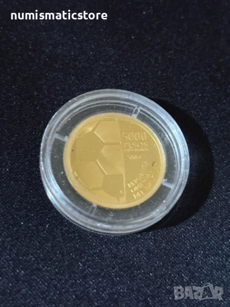 Уругвай 2004 - 5000 песос - 100-годишнина на ФИФА , Футбол - Златна монета → Обява 51239744