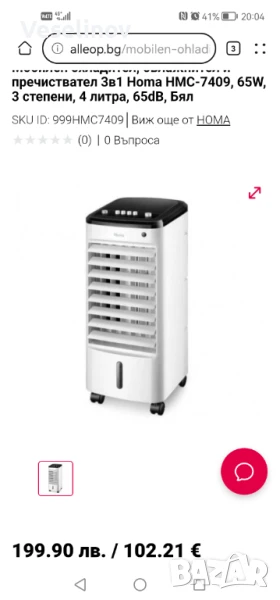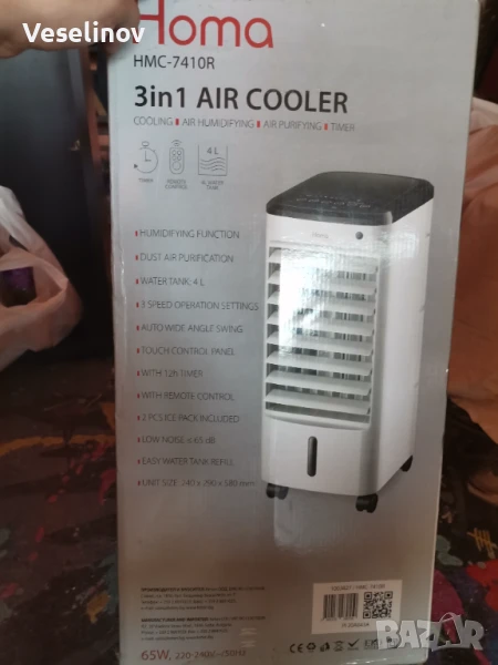Здравейте, предлагам мобилен охладител, овлажнител и пречиствател 3в1 Homa HMC-7409, 65W, 3 степени, 4 литра, 65dB. Чисто нов, не ни влезе в употреба, тъй като ни се роди дете и се наложи да закупим климатик. Изпращам с опция преглед тест за ваша сигурност. Моля, последвайте профила ми и разгледайте другите ми обяви, имам за всекиго по нещо!