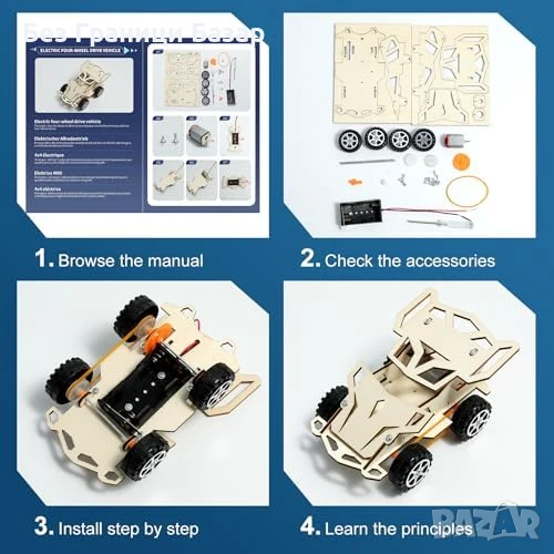 6 в 1 STEM комплект: електрическа кола, марсоход, джип, лунен роувър и др.