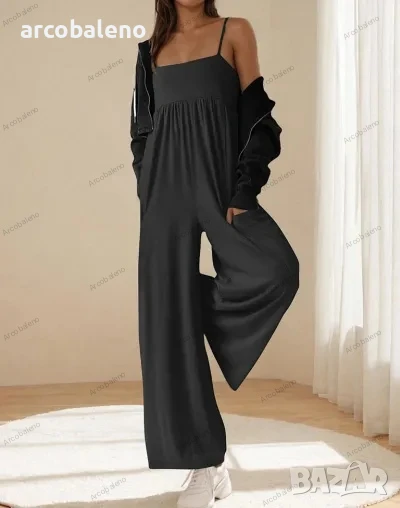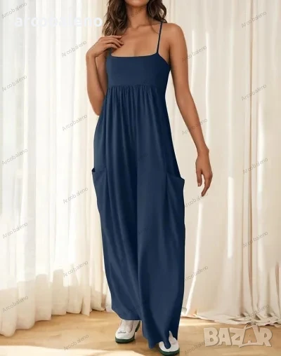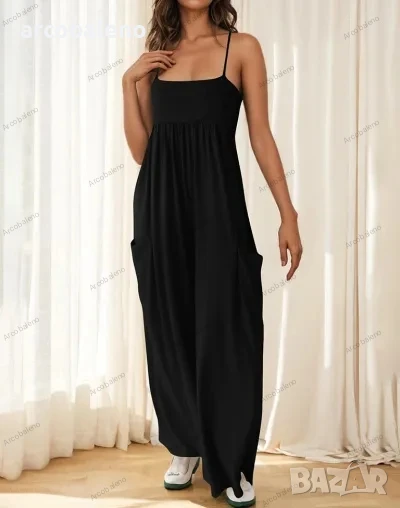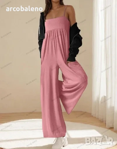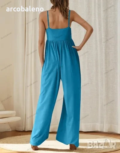 Дамски ежедневен гащеризон без ръкави с квадратно деколте и широки крачоли, 6цвята