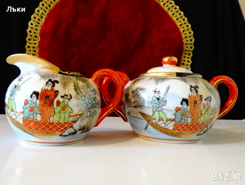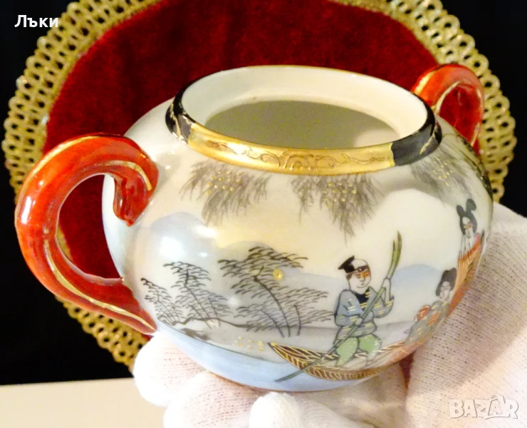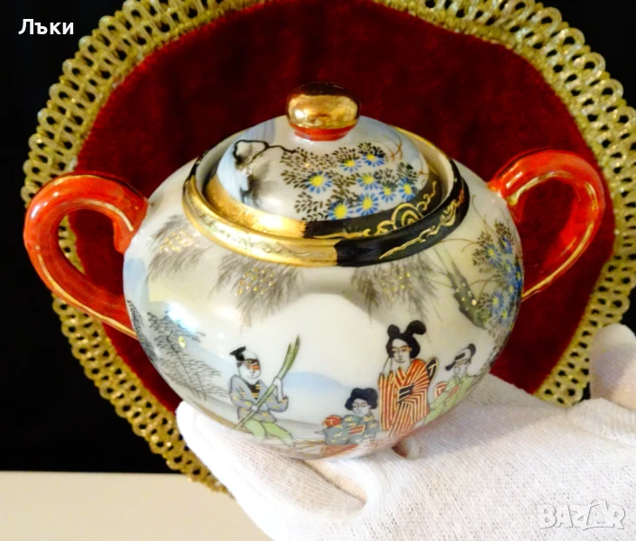 Сацума от период Мейджи,късен Едо.Маркирана със символ Щастие.Ръчно рисувана с