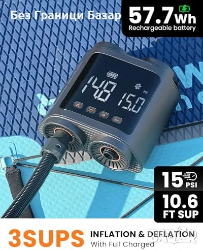Презареждаема електрическа помпа за SUP – надува и изпуска до 3 борда с едно зареждане