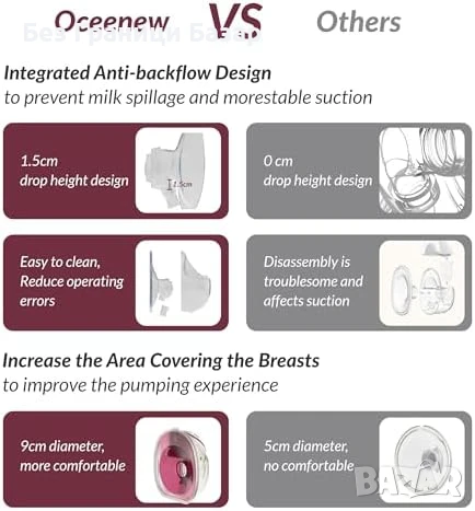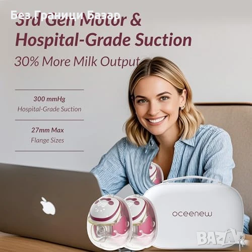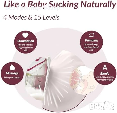 Нови 2 броя Безжична помпа за кърмене 300mmHg – 15 нива, памет Oceenew W216