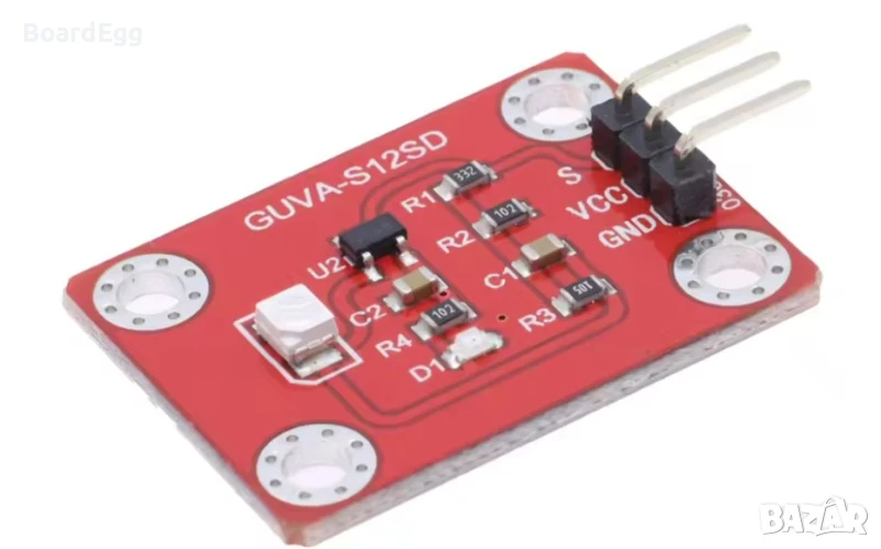GUVA-S12SD е високочувствителен ултравиолетов (UV) сензор, предназначен за измерване на интензитета на UV-A и UV-B лъчение. Модулът е компактен, енергоефективен и съвместим с платформи като Arduino и Raspberry Pi. Подходящ за изграждане на UV индикатори, слънчеви станции, метеорологични системи и носими устройства.