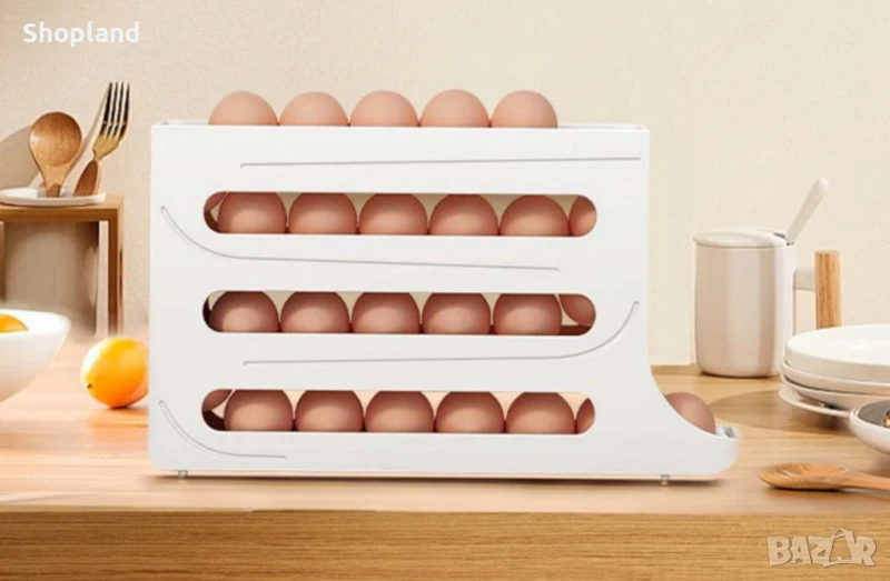 Открийте нов начин за съхранение на яйца с тази 4-слойна плъзгаща се поставка – иновативно решение, което съчетава функционалност, безопасност и стил. Създадена за съвременната кухня, тя осигурява оптимално използване на пространството и предпазва яйцата от повреди.