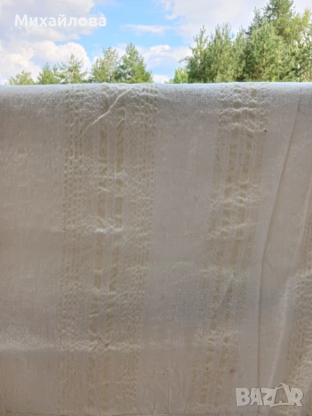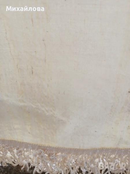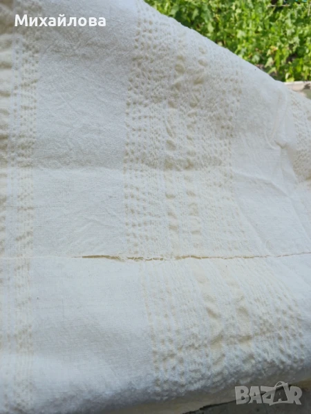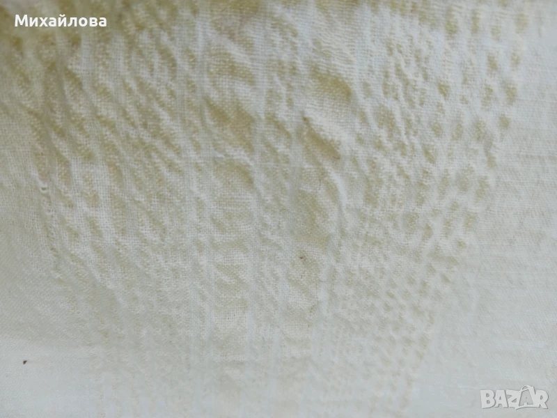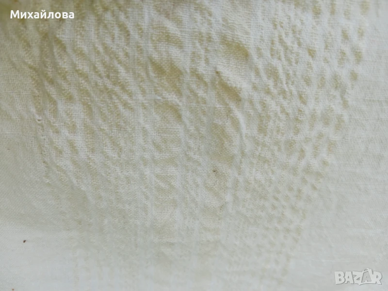 Кенарена покривка за легло с ресни. Размер 200/150 см. 100% памук. Автентично. Запазено, без петна. Направено е от три платна зашити ръчно. Тъкано ръчно. Ресните също са памучни.