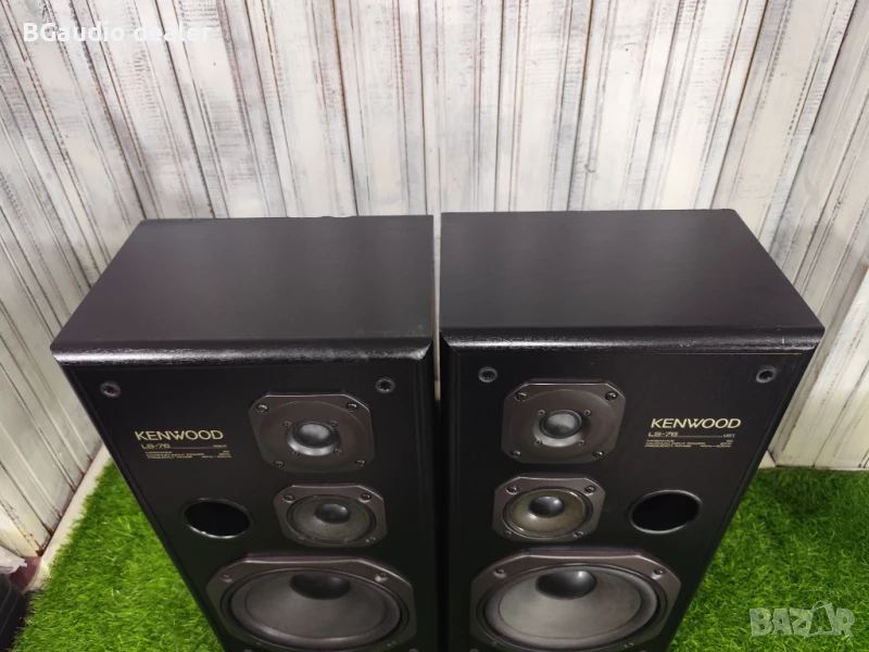 Трилентови тонколони Kenwood model LS-76. С много добър външен вид и перфектни технически. Конструкция тип басрефлекс с предно разположение с 8″ басови говорители. Габаритни размери: височина 50cm, ширина 27cm, дълбочина 21cm. Максимална входяща мощност 80w, импеданс 8ohm, честотна лента 40Hz-20kHz. Произведени в Испания.