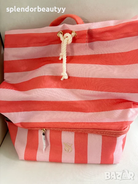 Victoria's Secret Раница и Хладилна Чанта 2 в 1, Розово-Коралово Райе → Обява 51241283