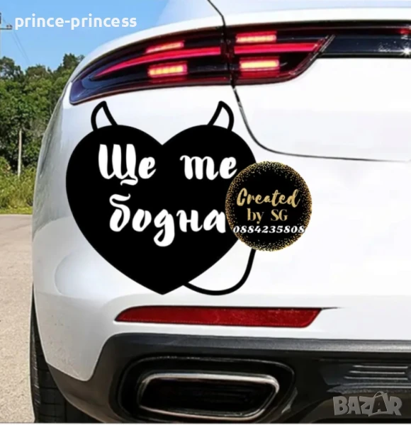 Стикер за кола Сърце дявол - ще те бодна → Обява 51242445
