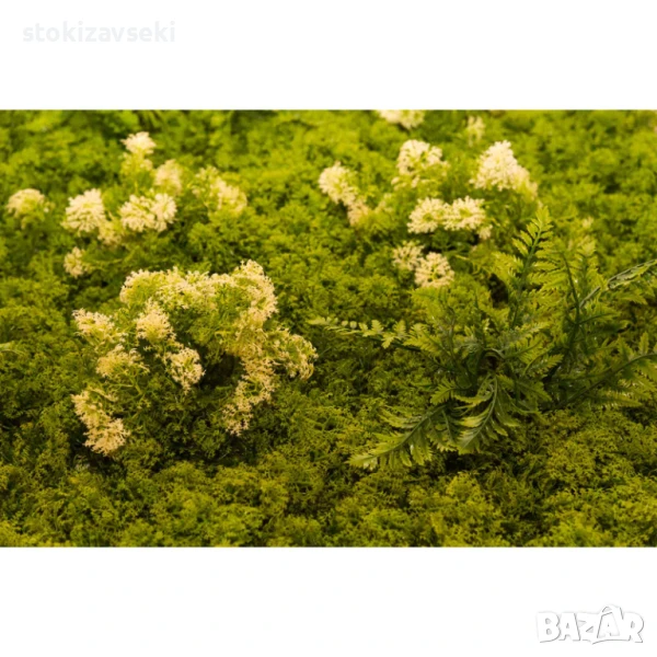 Зелено пано за стена с изкуствени растения.