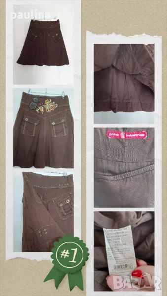 2️⃣. Колаж / XS / S - "Phink Industries". Цената е крайна 19,99лв / 10 евро. Разкроена дънкова пола, модел балерина или Балонка. Отвътре е завършена като Балонка, с вътрешно стесняване на обема от хастара. Допълните екстри са ексцентричният модел и обемните джобове отпред и отзад, като нова е, без дефекти и етикет.