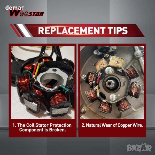 WOOSTAR 7-бобинен 8-жилен магнитен статор за TT-R125E 2003-2008 TT-R125L 2014-2017 TT-R125lE