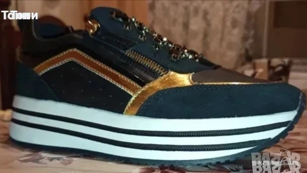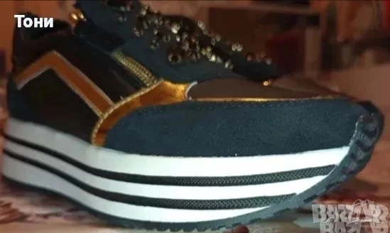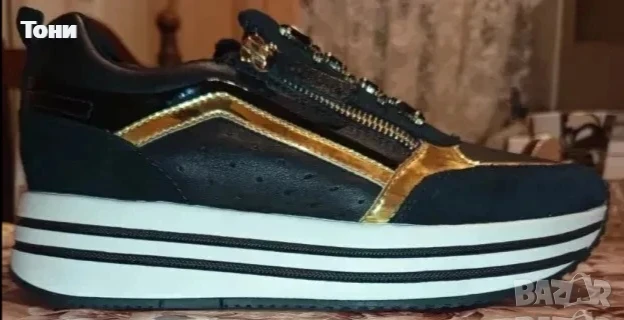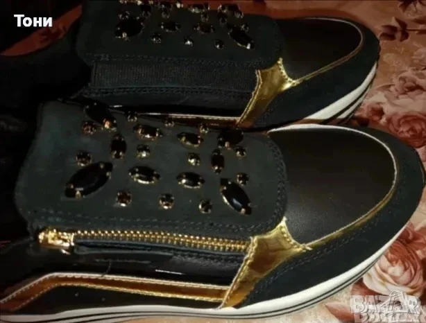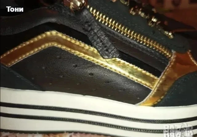Ново GEOX RESPIRA ORIGINAL Луксозни Маркови Дамски Високи Маратонки Изцяло от Натурална Естествена Кожа. Украсени с шити камъчета и златисти орнаменти. С Етикет.