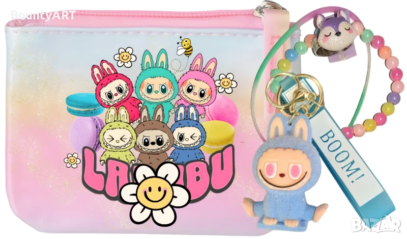 - Несесерче/портмоне с цип Labubu – перфектно за дребни аксесоари и детски "съкровища".