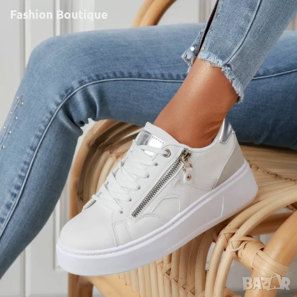 Бели кожени дамски маратонки → Обява 51246055
