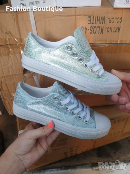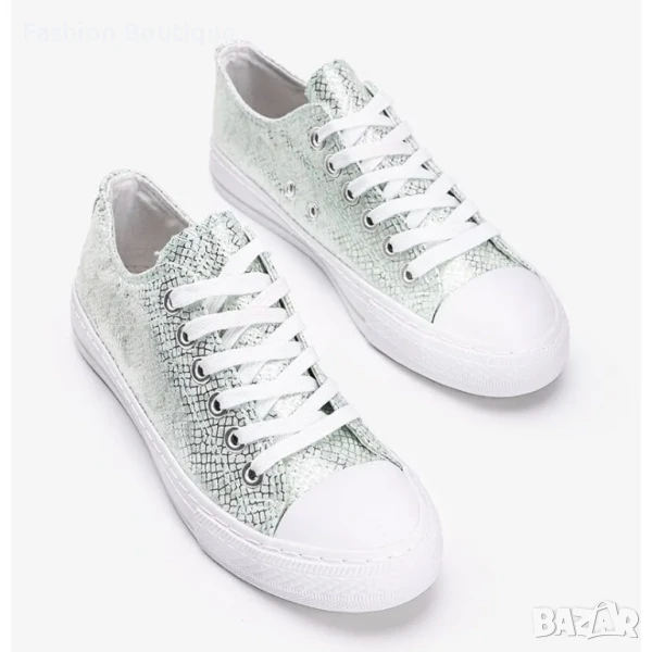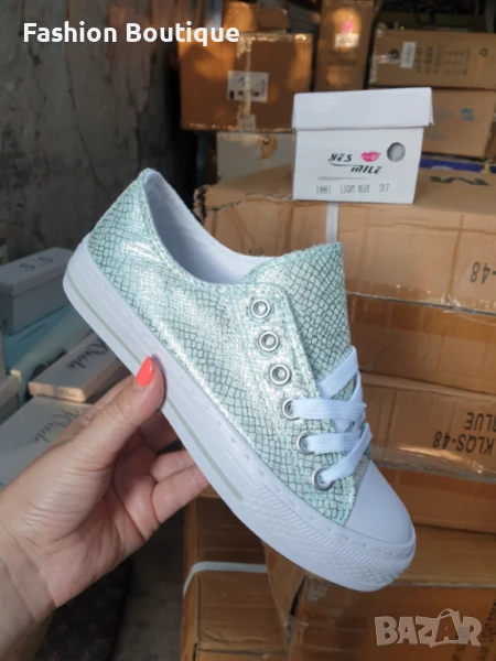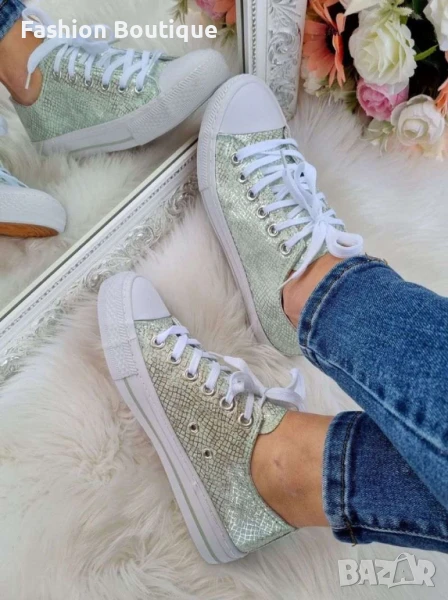 Италиански дамски кецове в бледо зелено сметана нишка → Обява 51246145