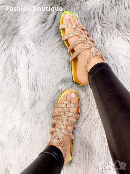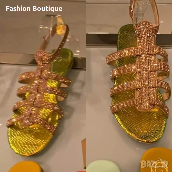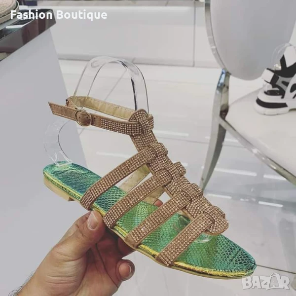Италиански сандали в цвят шампанско с камъни → Обява 51246186